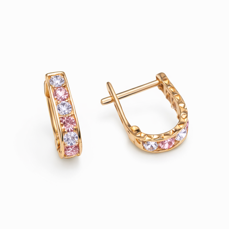 Lever Back Earrings in 14K/585 Rose Gold with Pink and White Cubic Zirconia
