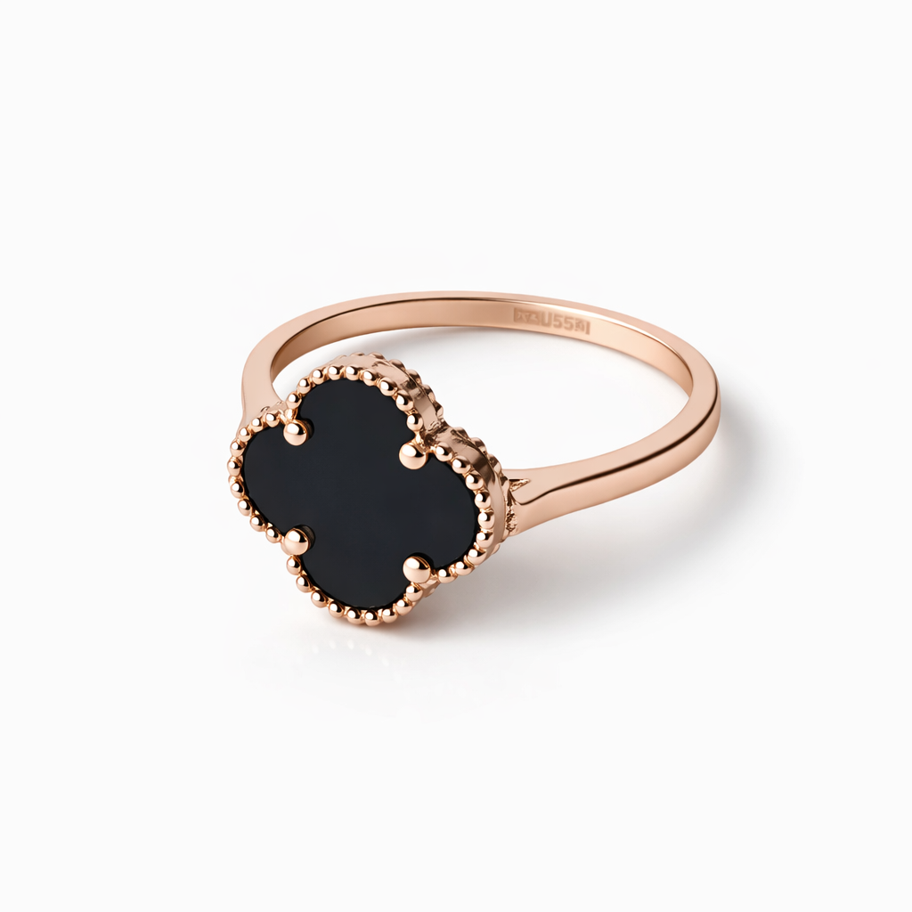Ring in 14K/585 Rose Gold "Clover" with Onyx