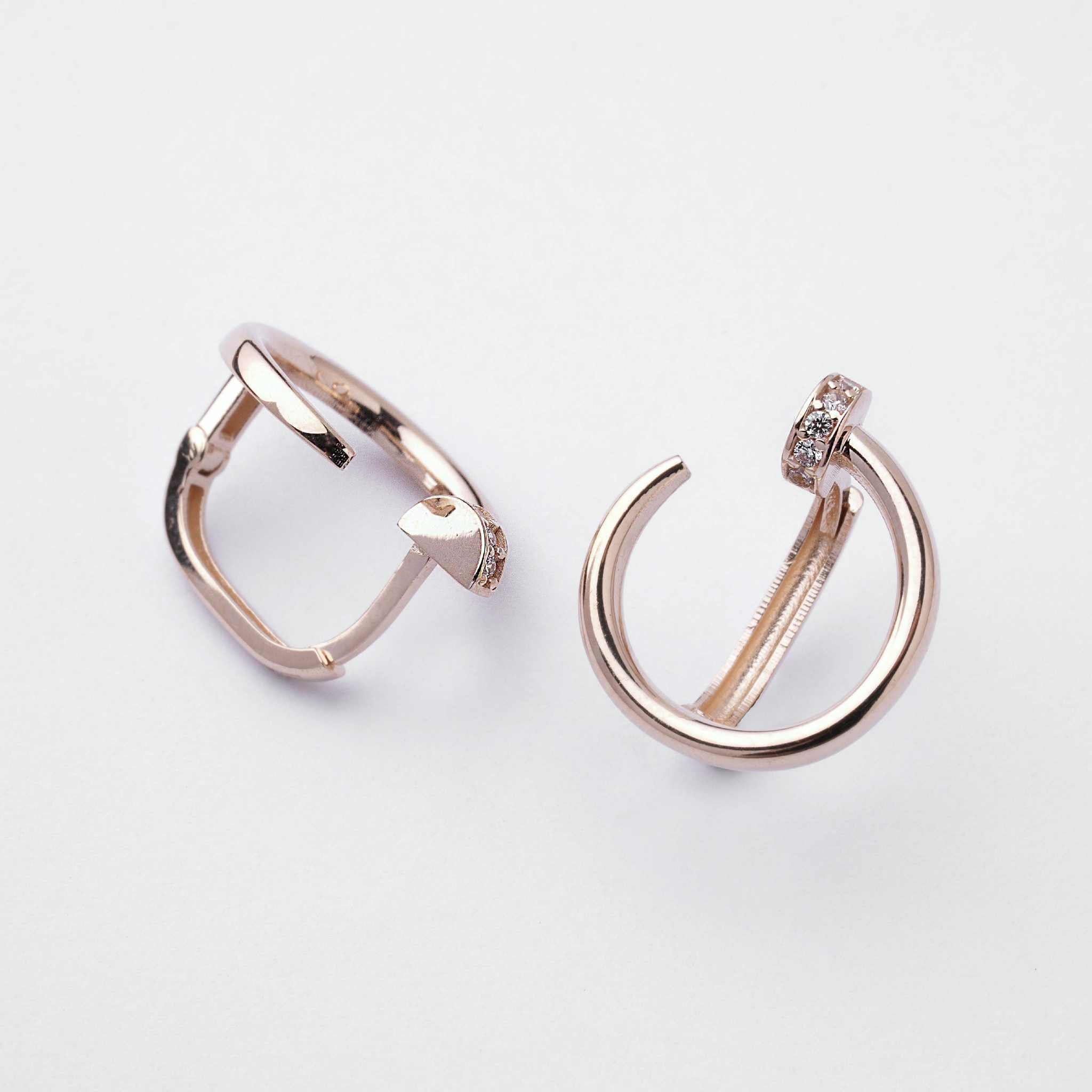 Lever Back Earrings Nail in 14K/585 Rose Gold with Cubic Zirconia