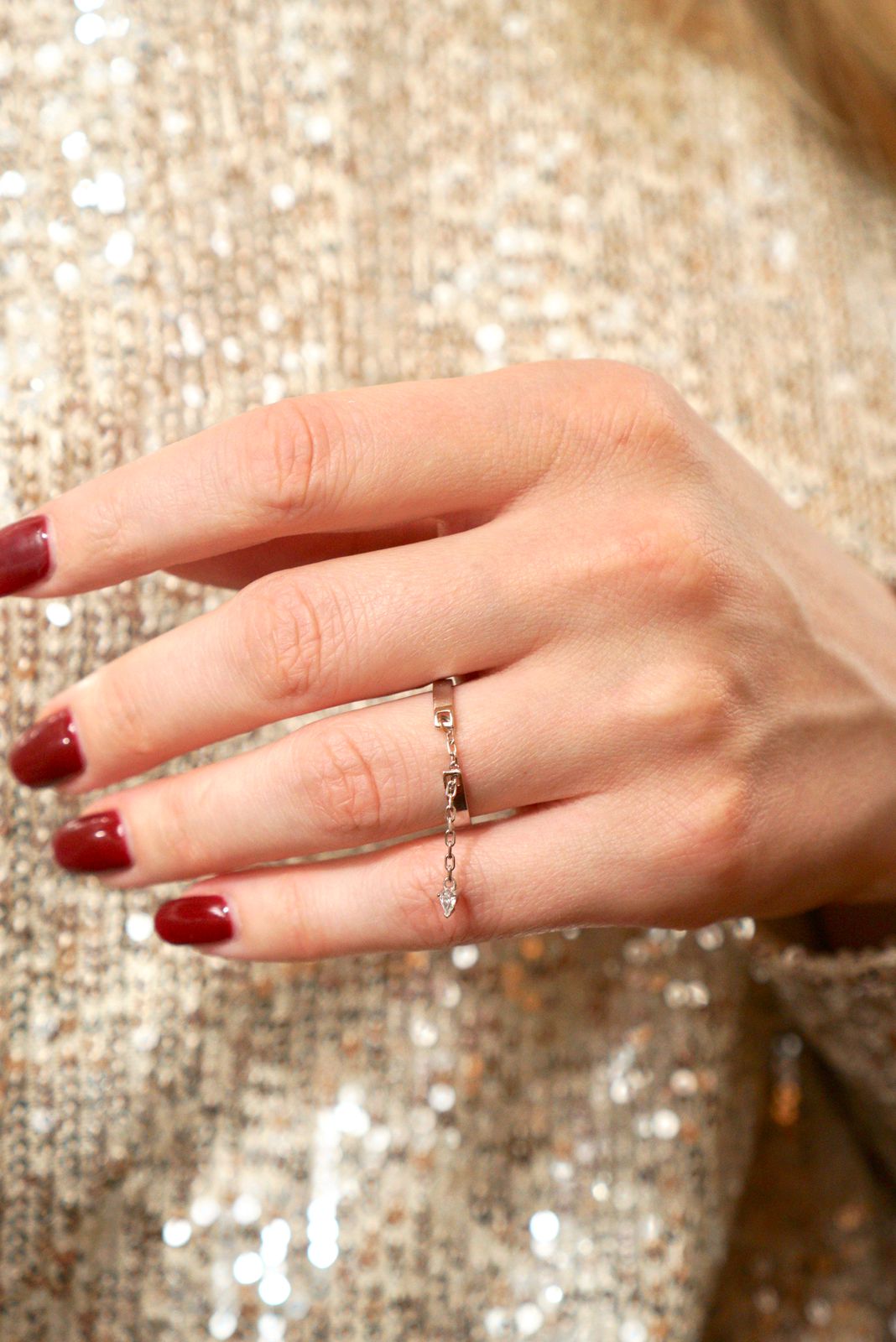 Ring in 14K/585 White Gold with Chain and Cubic Zirconia
