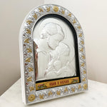 True replica of orthodox icon manufactured using special metal PVD alloy processed with pure silver 999° and serigraphy that remain unchanged over time and according to the byzantine art of iconography.