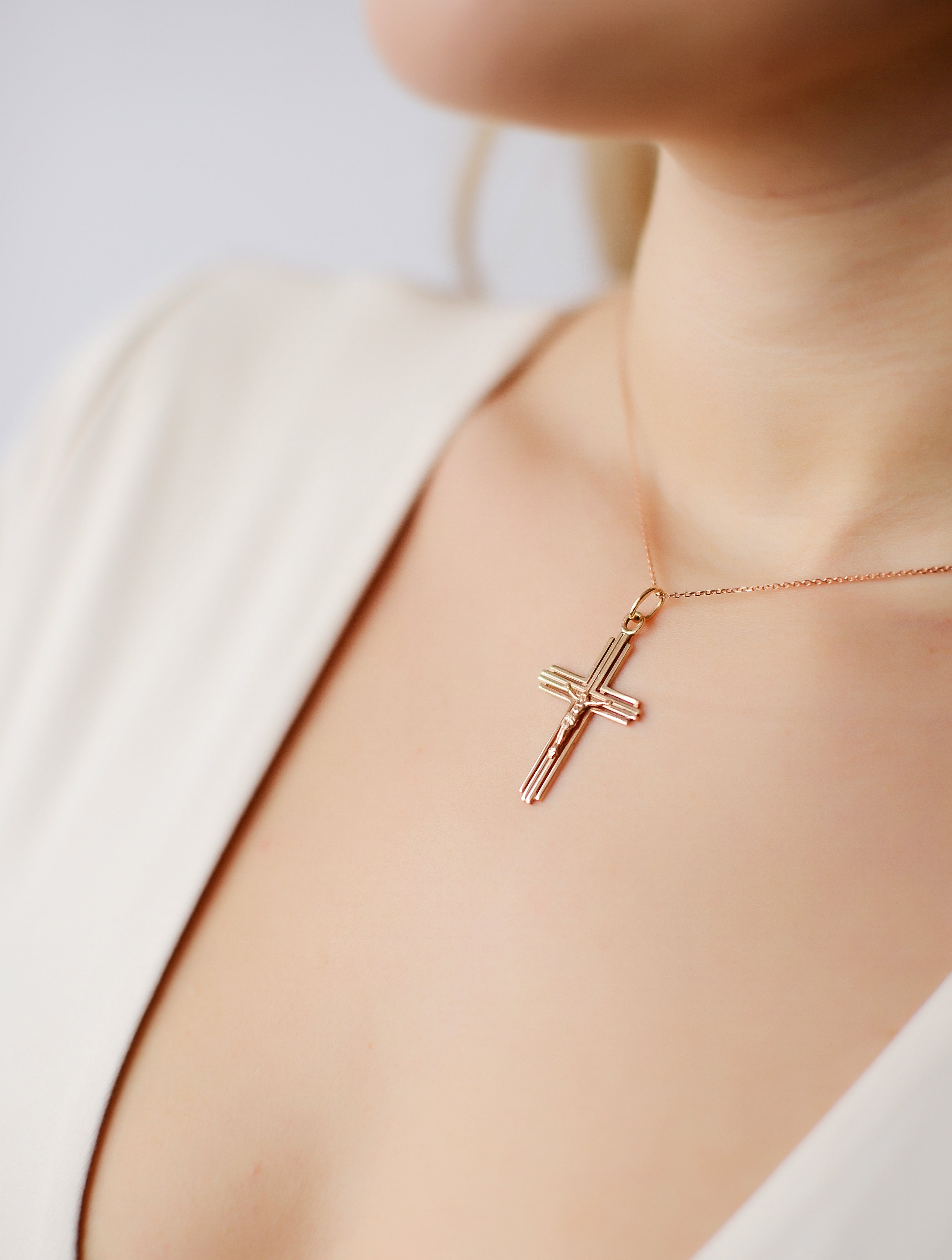 14K/585 Rose Gold Cross