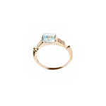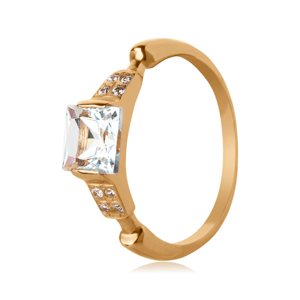 Stylish ring in a 14k rose gold, decorated with stunning square-shaped blue topaz and cubic zirconia.