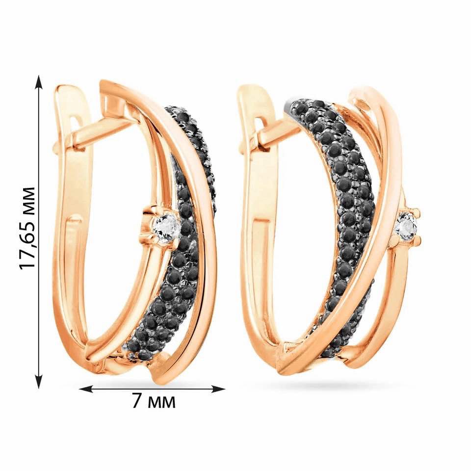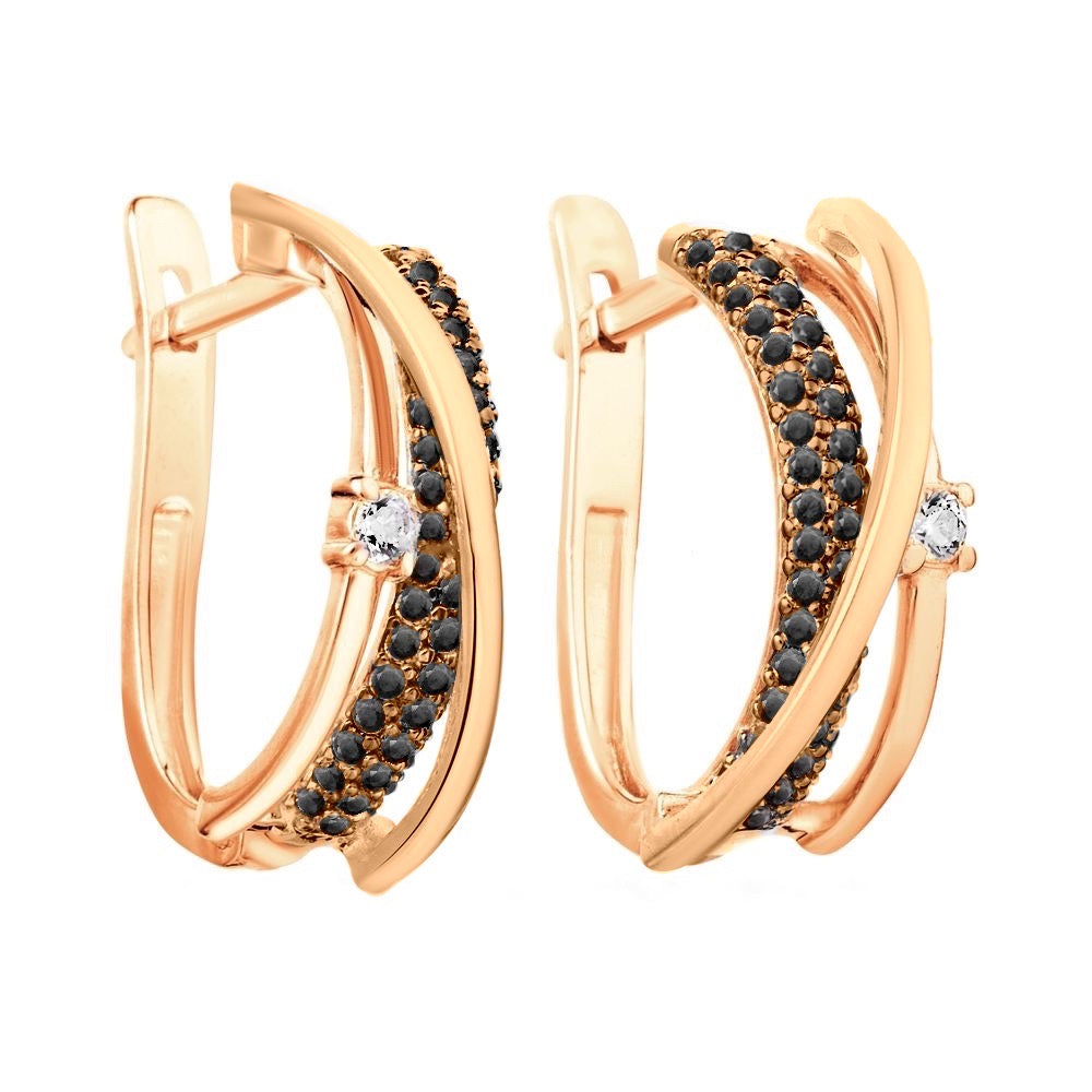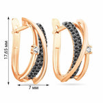 14K/585 Rose Gold Lever Back Earrings with Black and White Cubic Zirconia