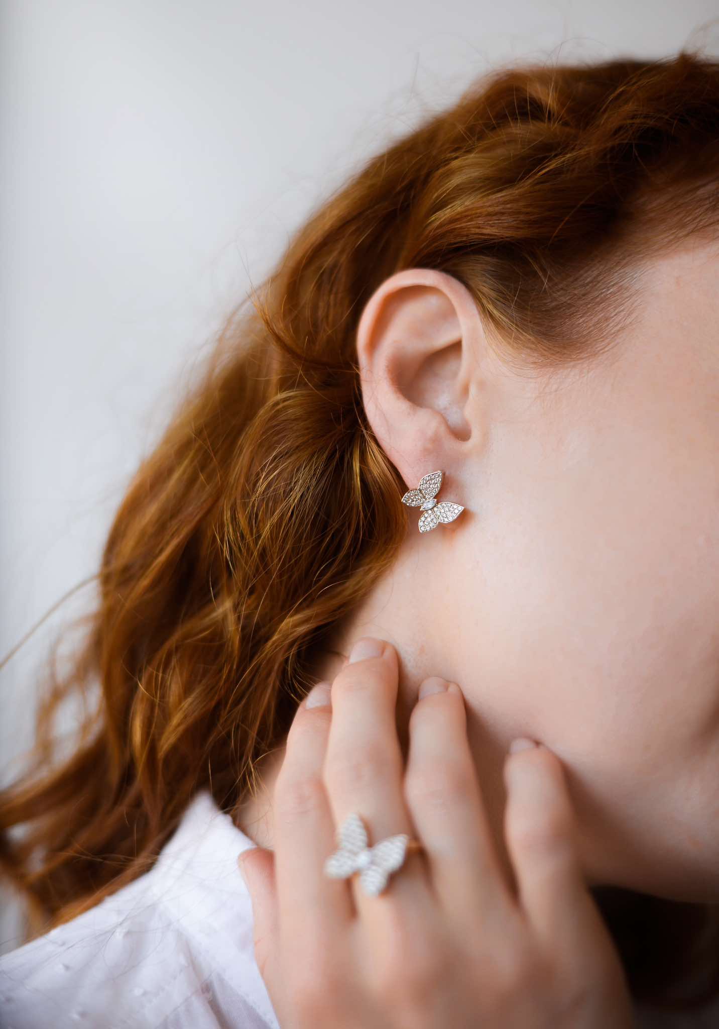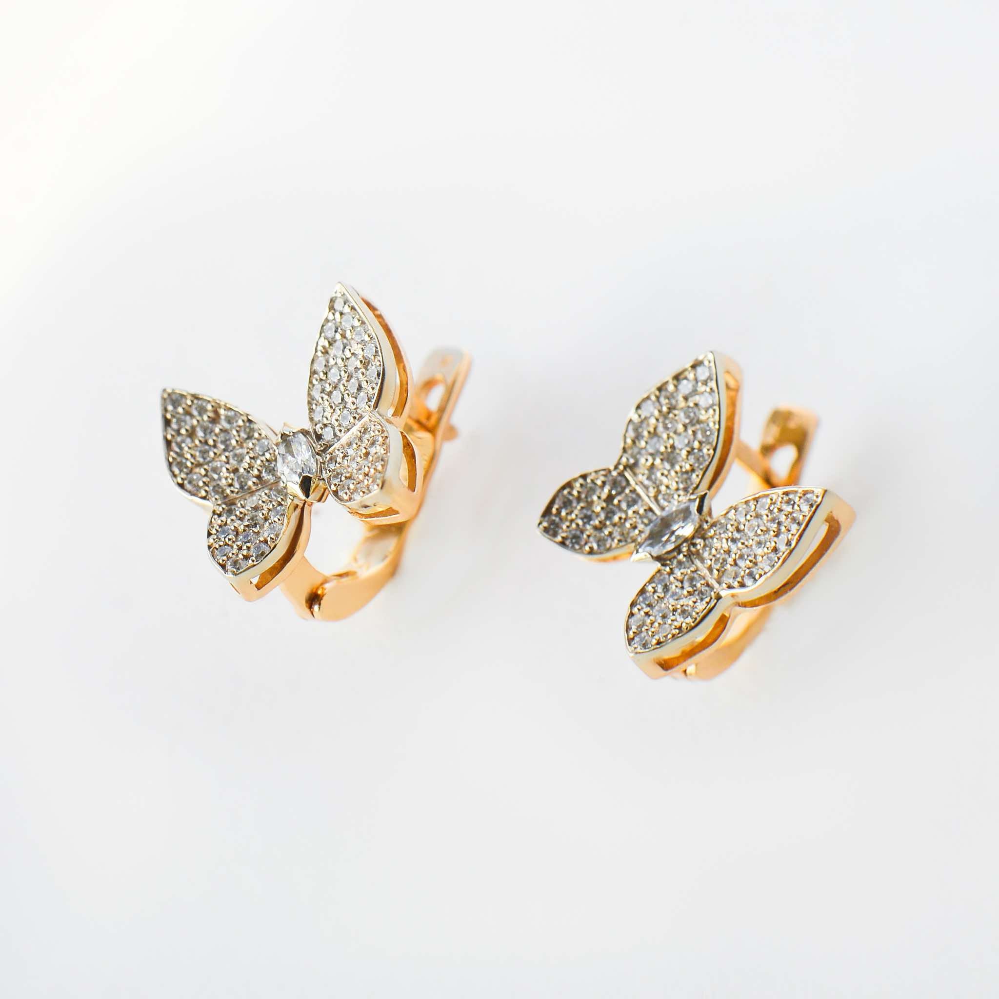 14K/585 Rose and White Gold Shiny Butterfly Lever Back Earrings