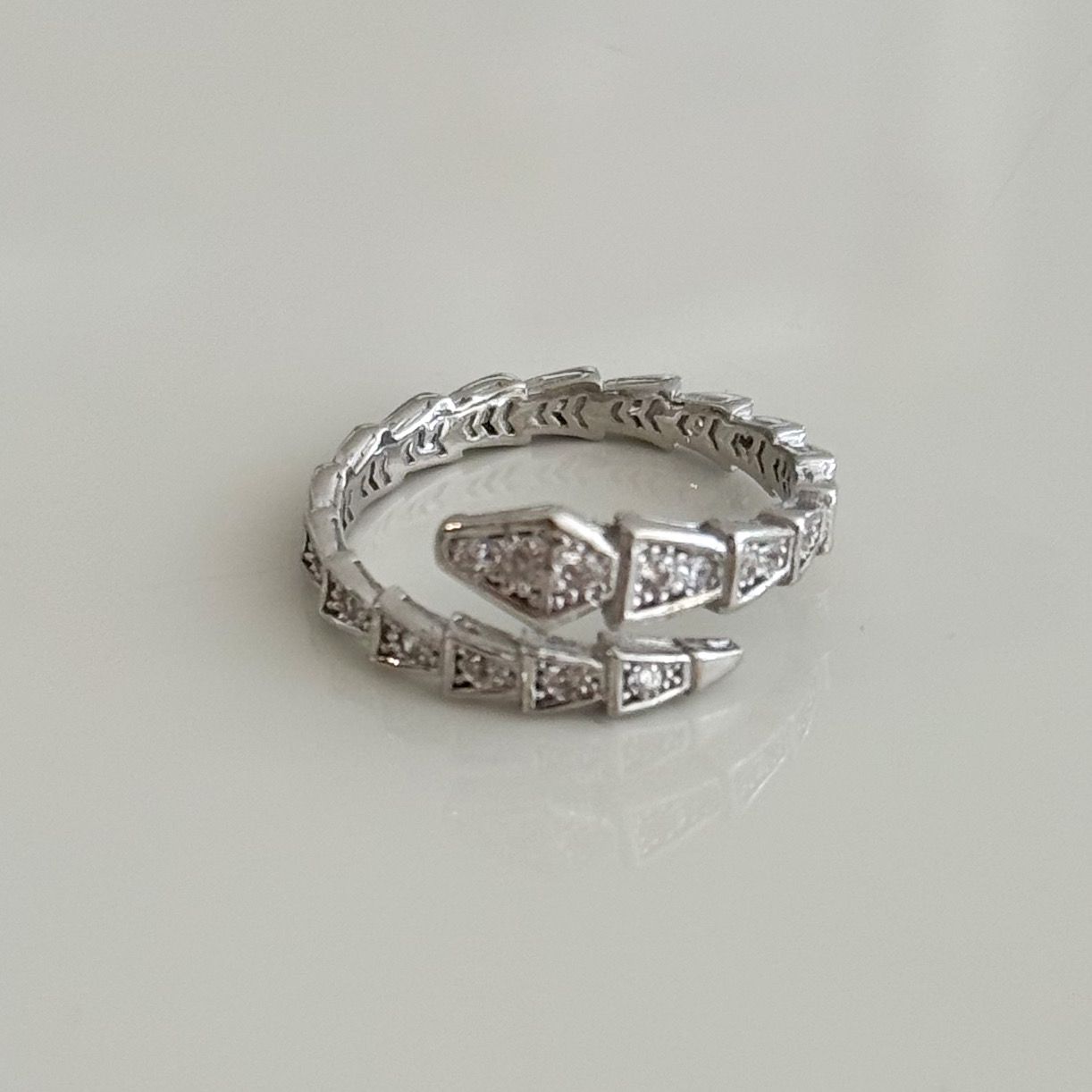 925 Sterling Silver Snake Ring with Cubic Zirconia