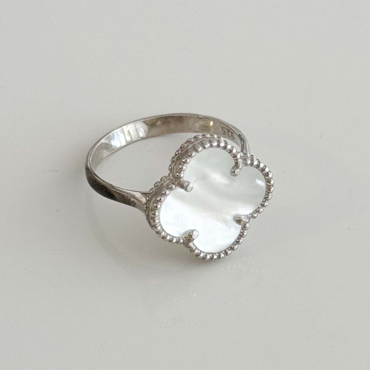 925 Sterling Silver Clover Ring with Mother of Pearl