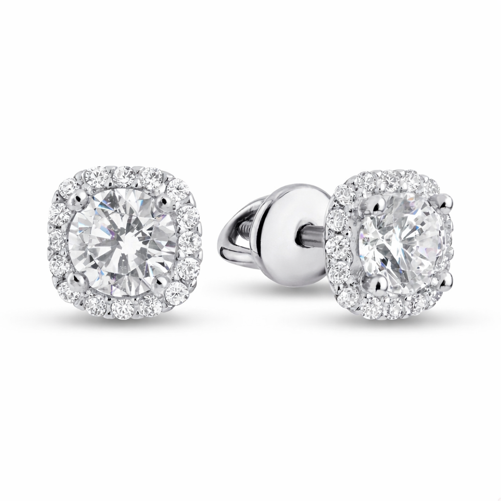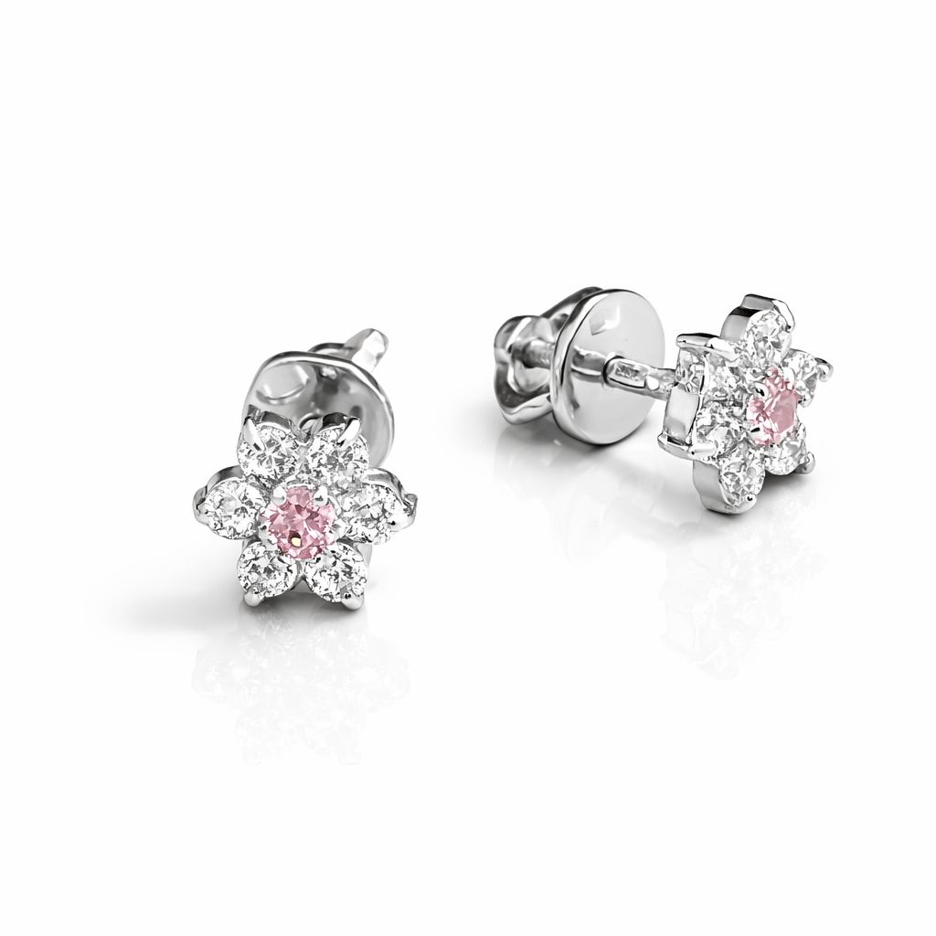 925 Sterling Silver Flower Stud Earrings with White and Pink Cubic Zirconia