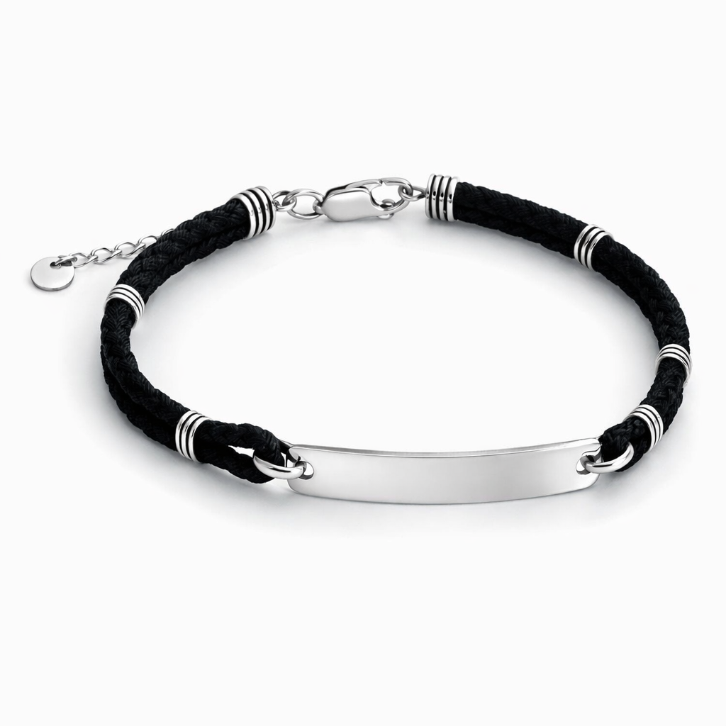 Rope Bracelet with 925 Sterling Silver Inserts and Plate for Engraving