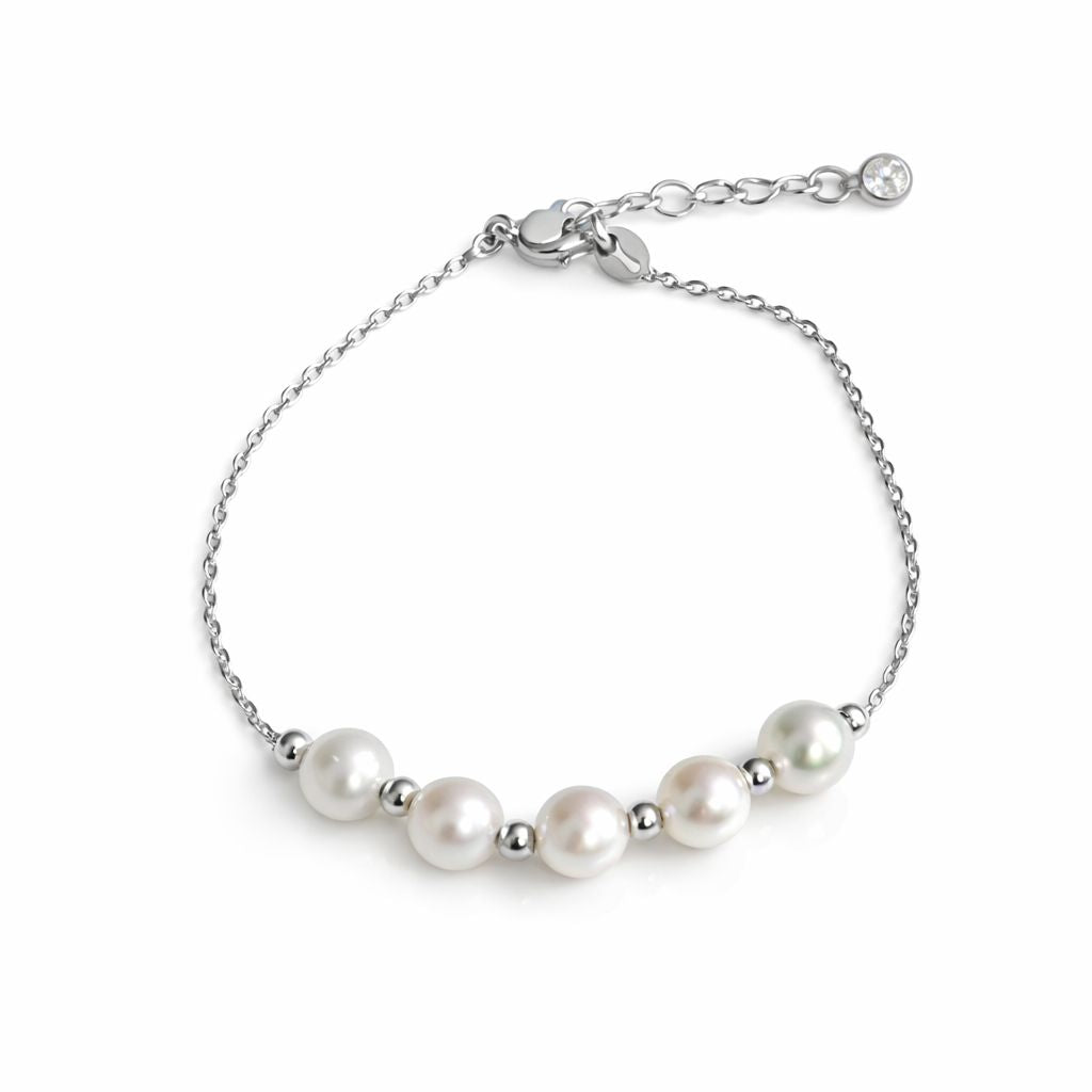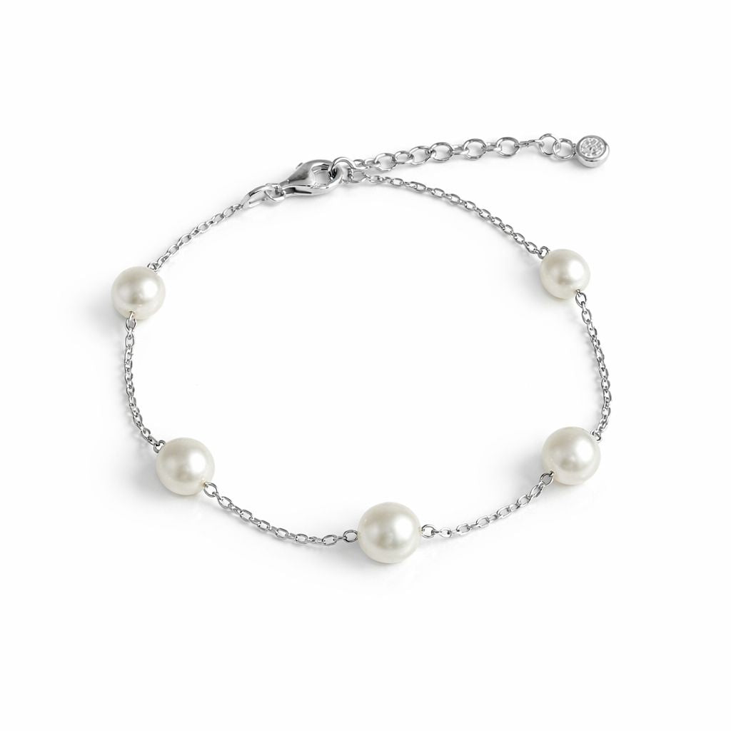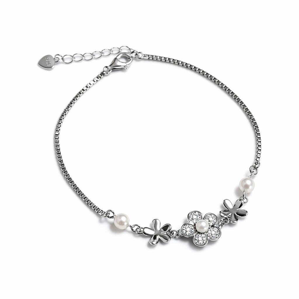 925 Sterling Silver Flower Bracelet with Pearls and Cubic Zirconia