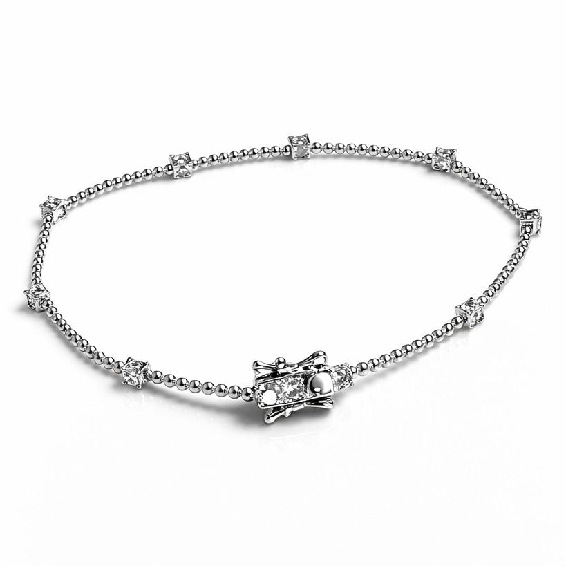 925 Sterling Silver Clover Anklet with Cubic Zirconia