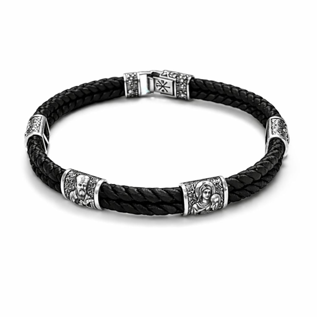 Silk Rope Bracelet with 925 Sterling Silver Inserts and Lock with Saints