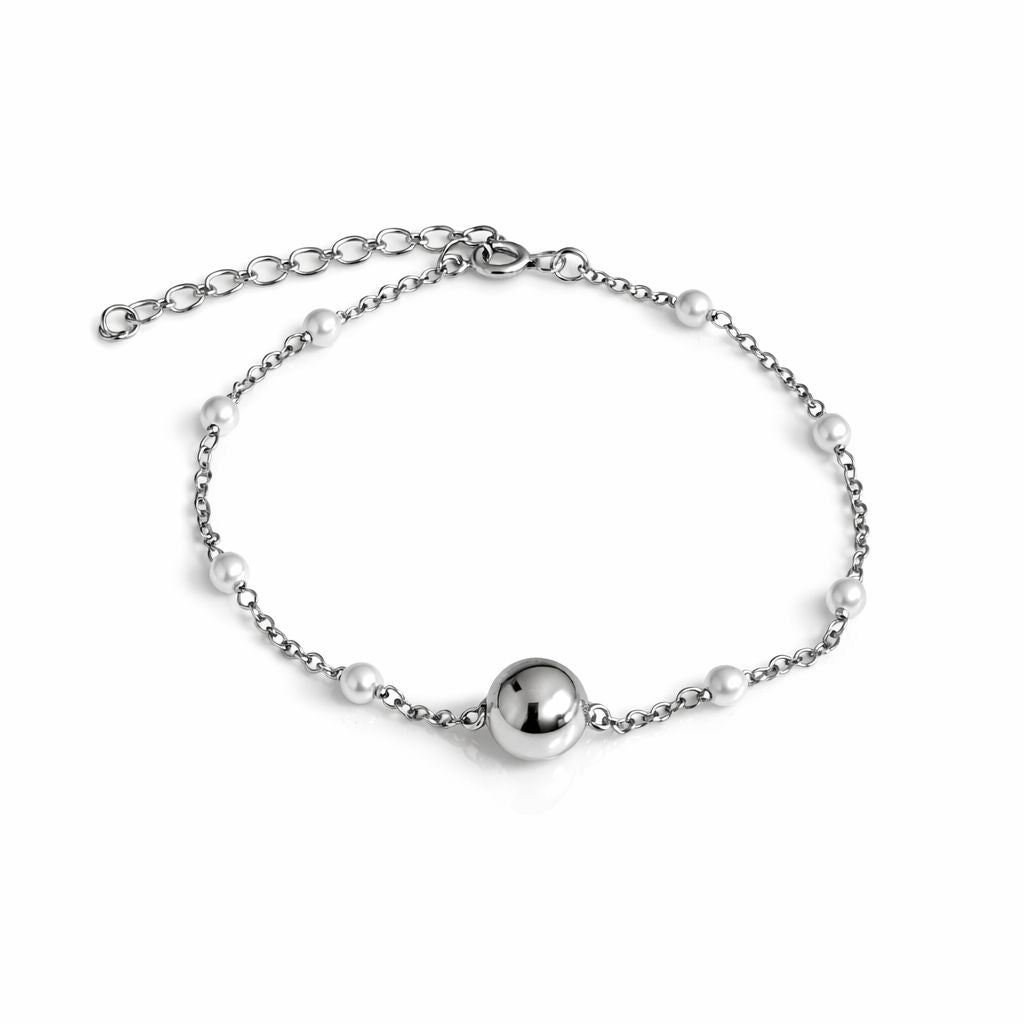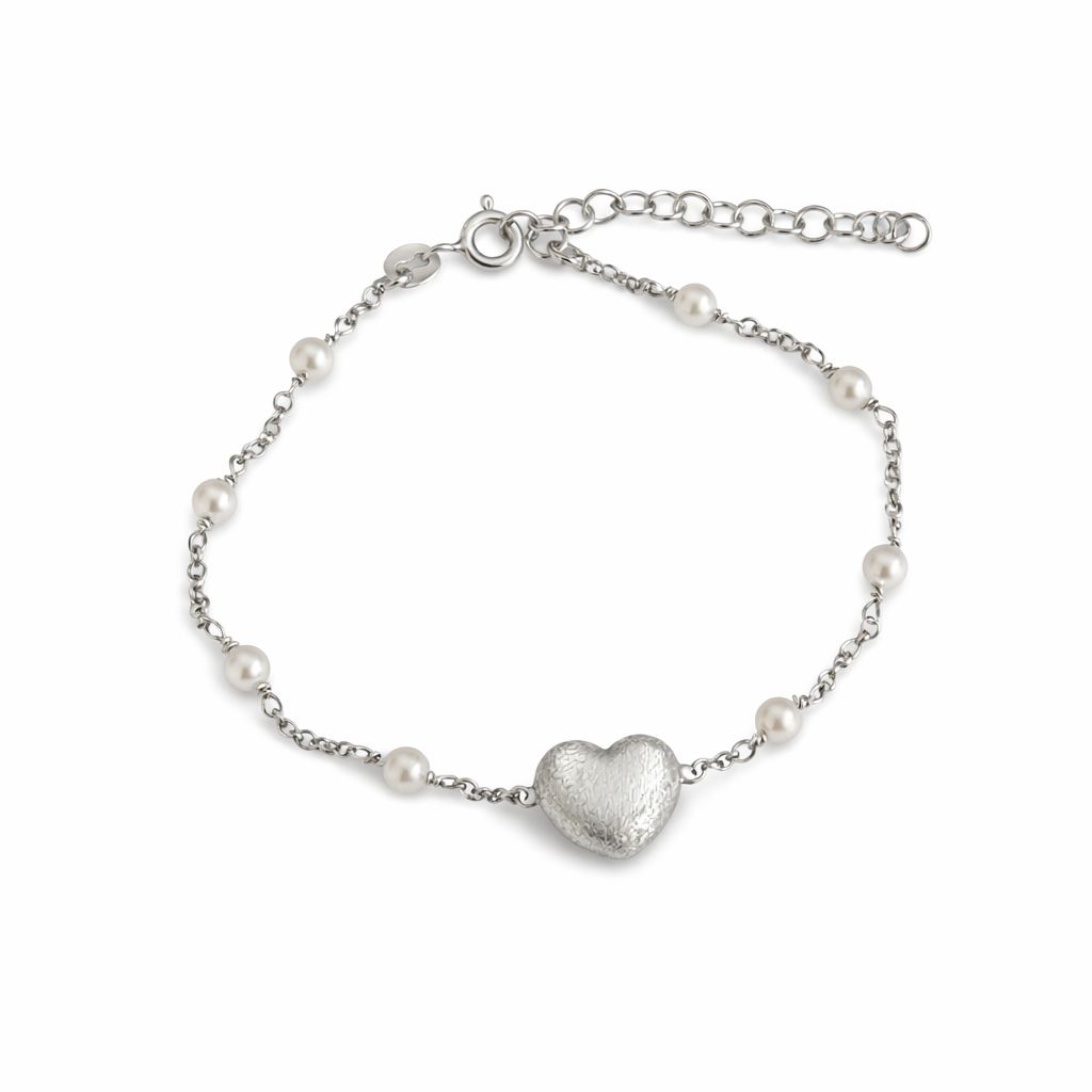 925 Sterling Silver Bracelet with Matte Brushed Heart and Pearls