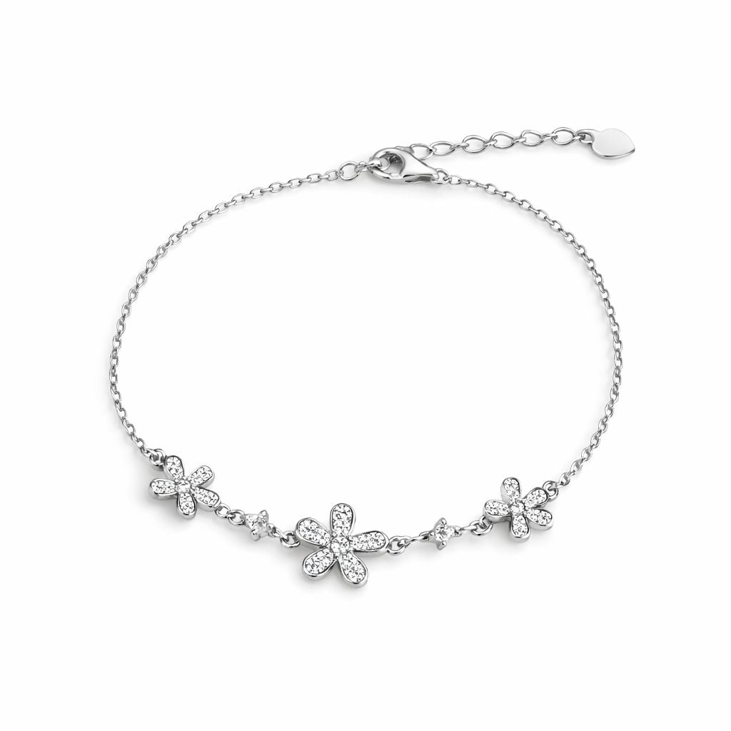 925 Sterling Silver Flower Bracelet with Cubic Zirconia