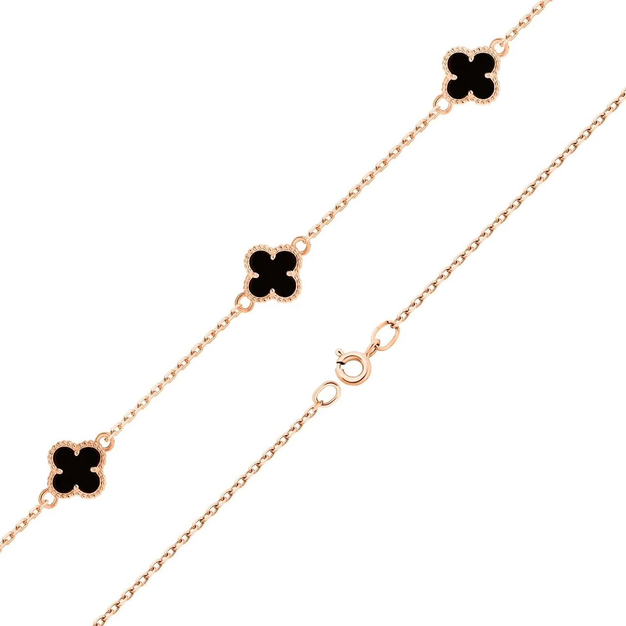 Clover Bracelet in 14K/585 Rose Gold with Agates