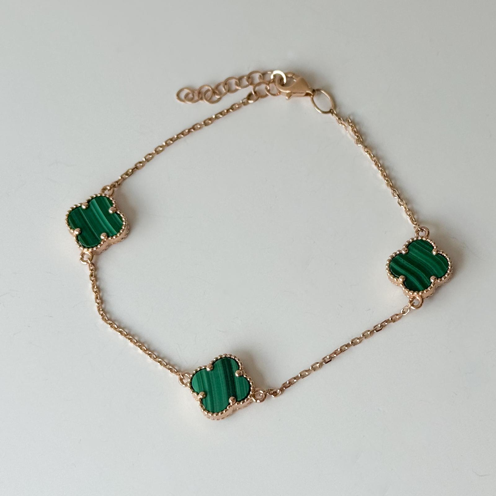 Clover Bracelet in 14K/585 Rose Gold with Malachite