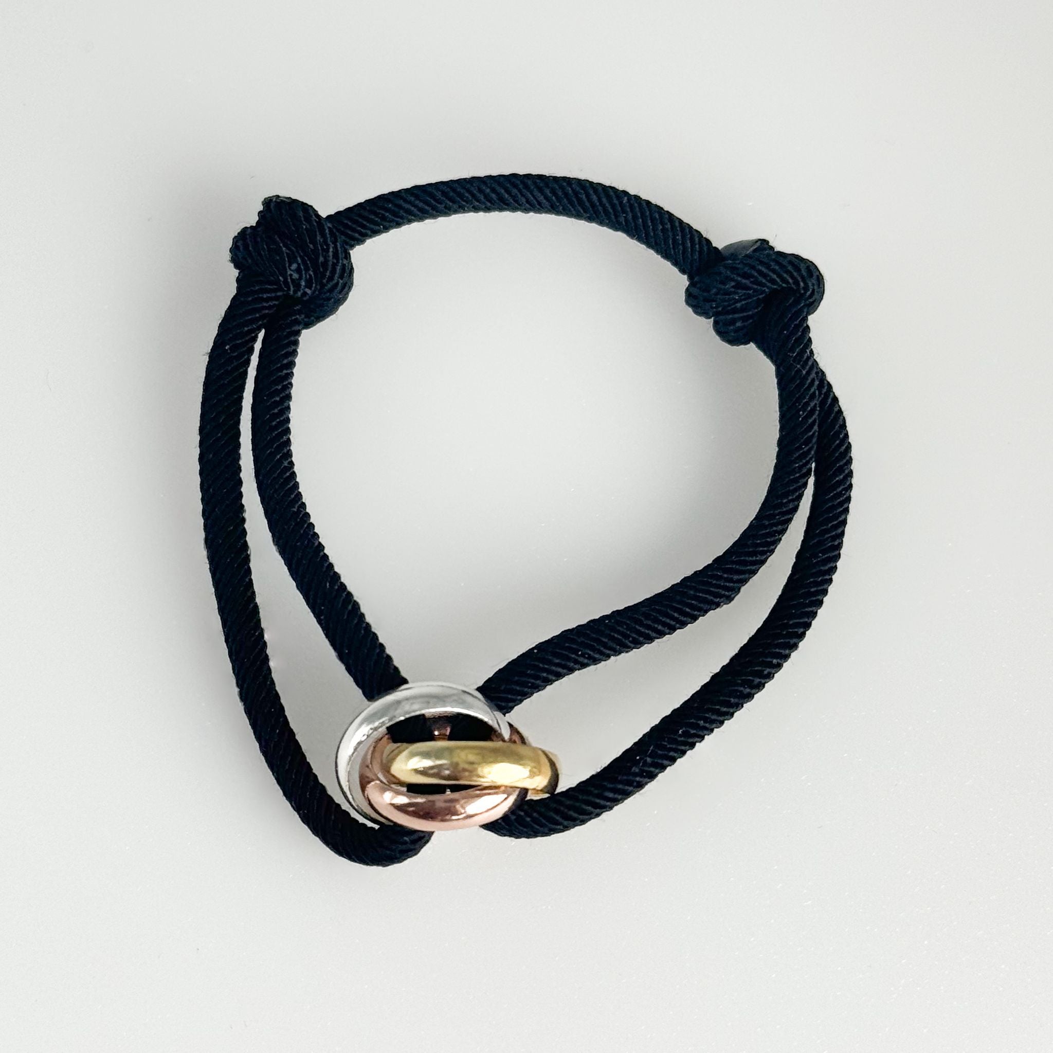 Rope Bracelet with 925 Sterling Silver,Rose and Yellow Gold Plated Ring