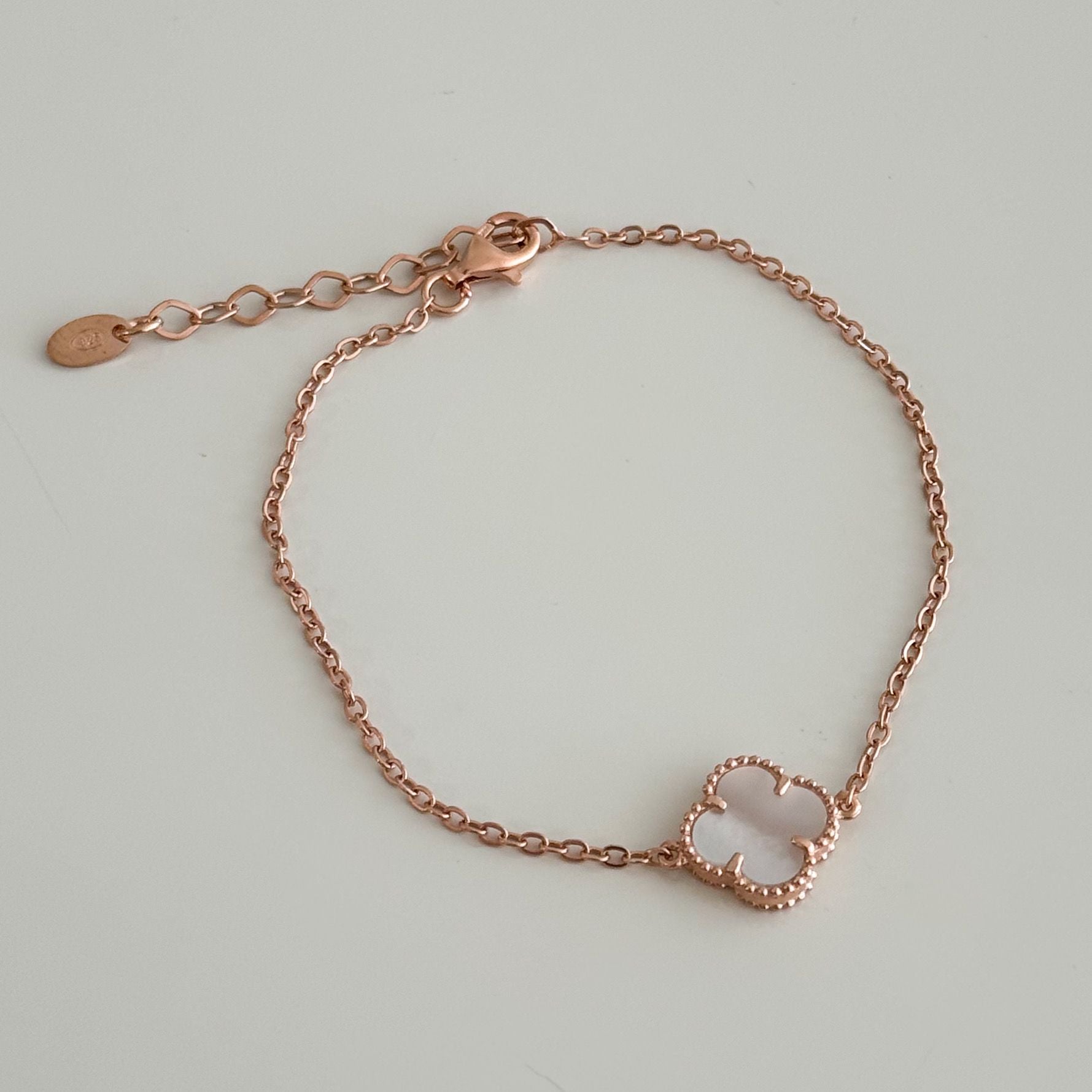Rose Gold Plated 925 Sterling Silver Clover Bracelet with Mother of Pearl