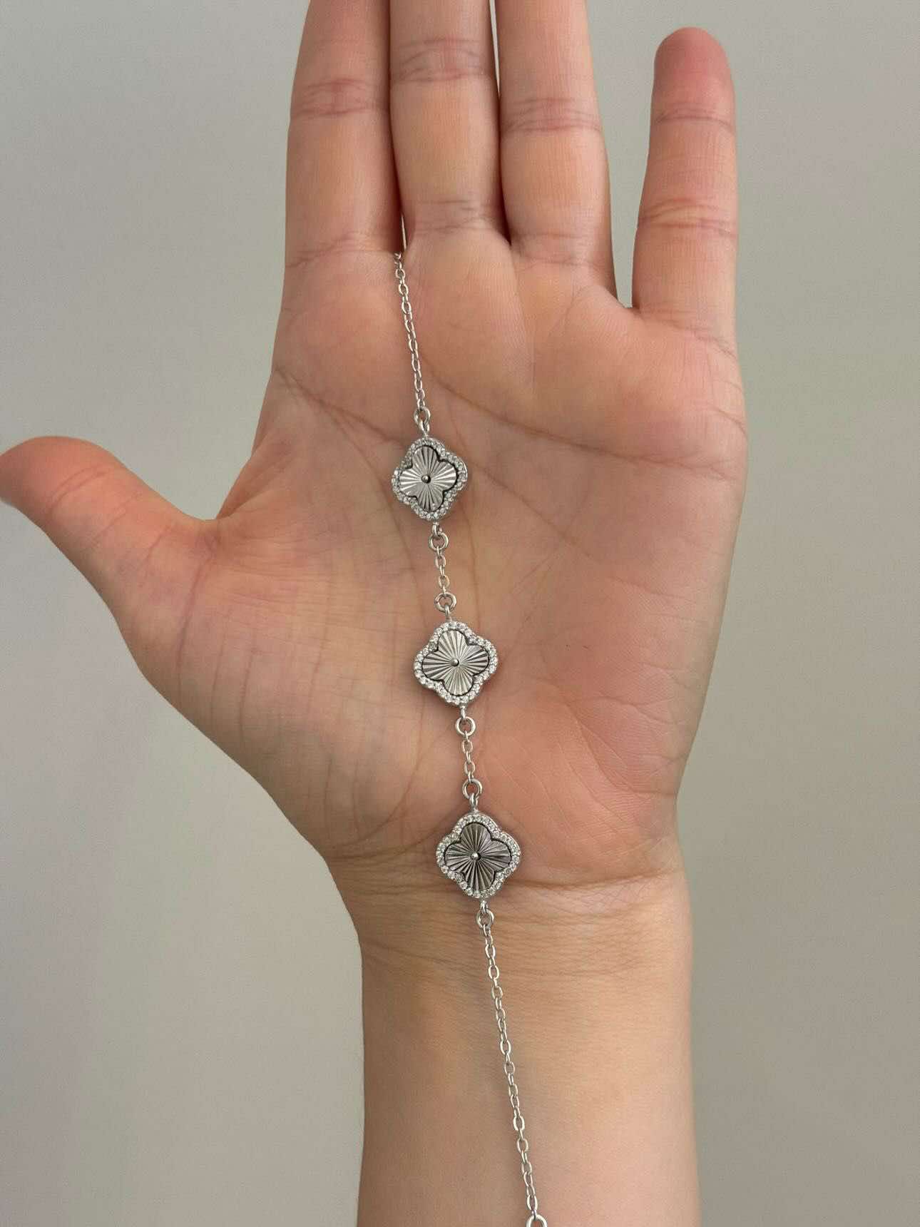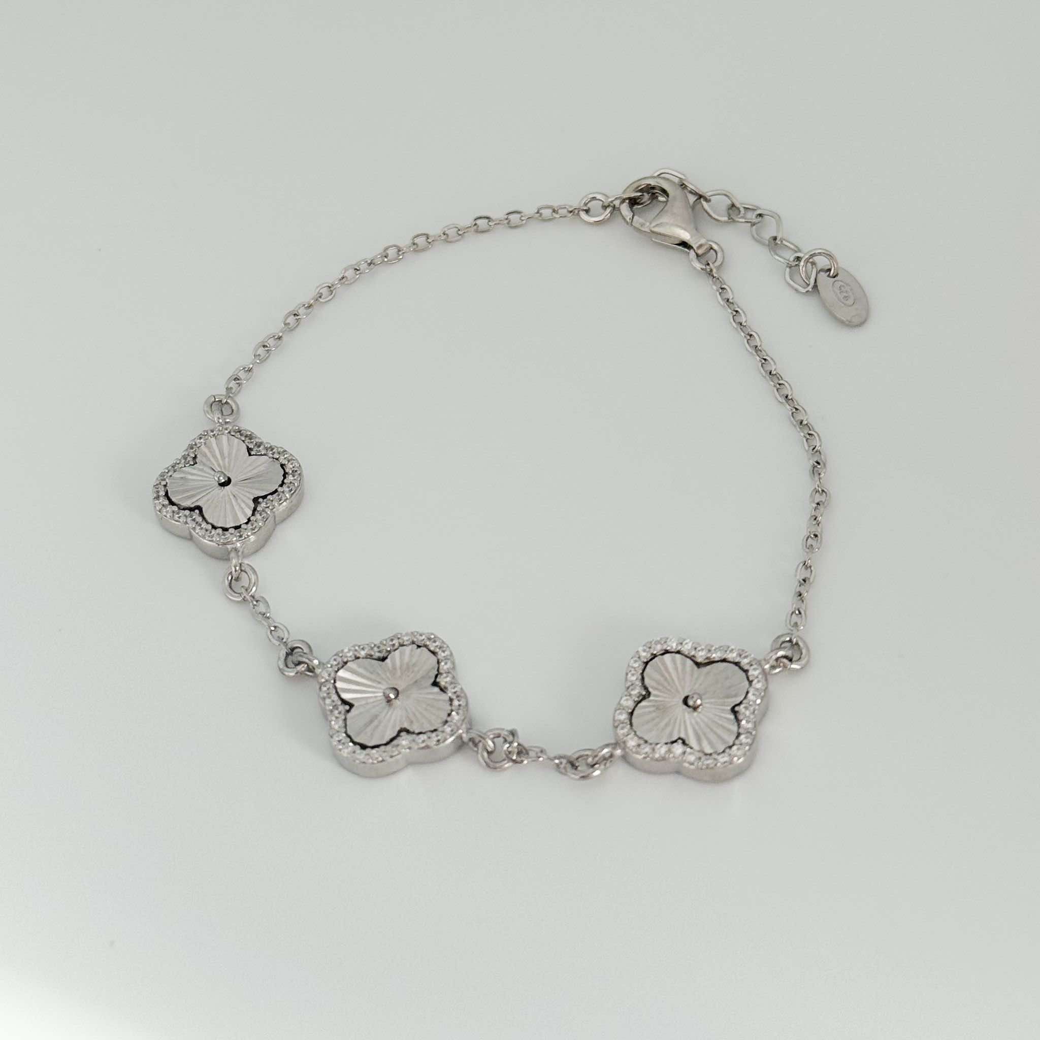 925 Sterling Silver Clover Bracelet with Cubic Zirconia
