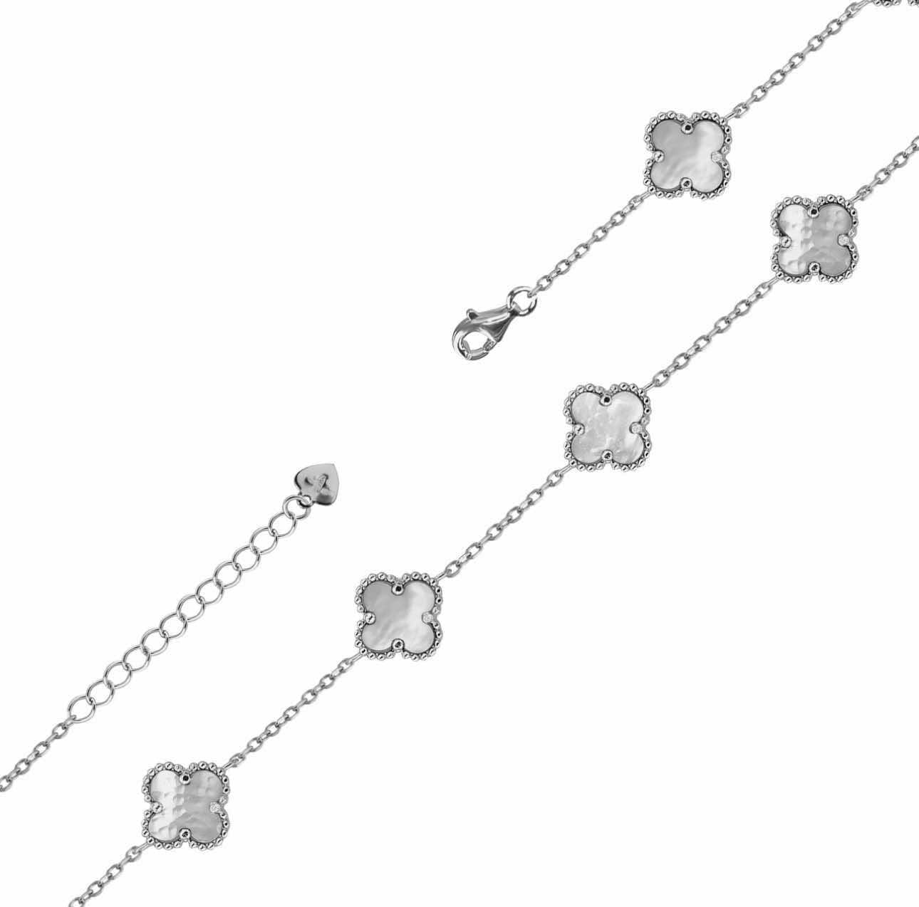 925 Sterling Silver Clover Bracelet with Mother of Pearl