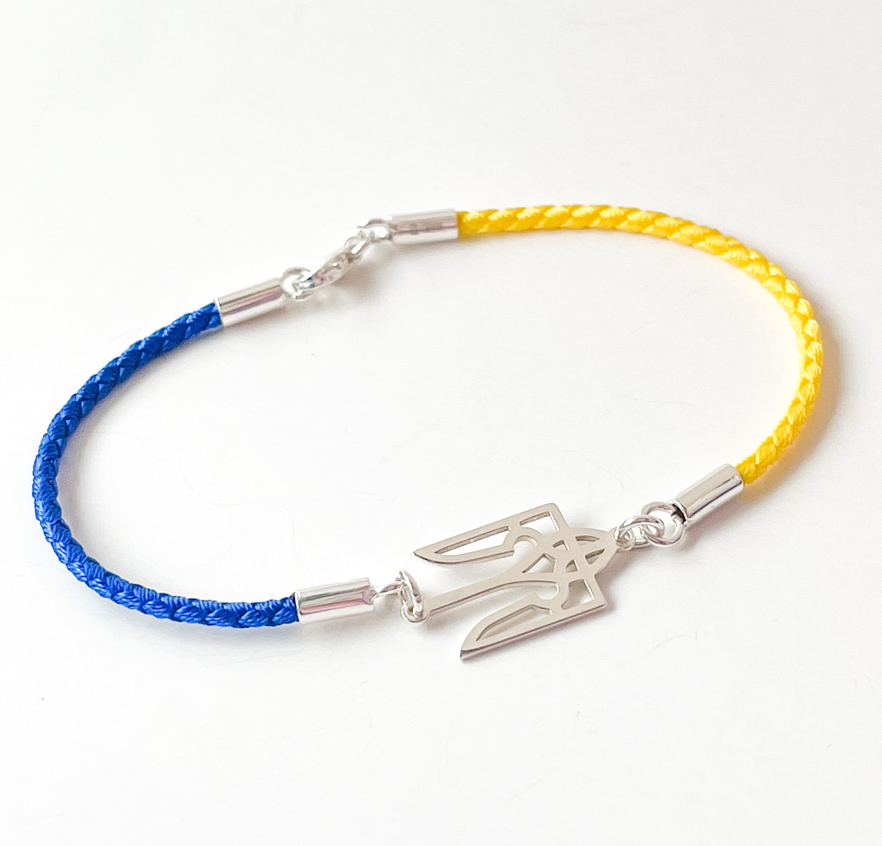 Wear a Blue and Yellow Silk Rope Bracelet with a 925 Sterling Silver Tryzub, and show your Ukrainian pride! Represent your heritage and your courage with this stylish yet bold reminder of your strength and spirit.