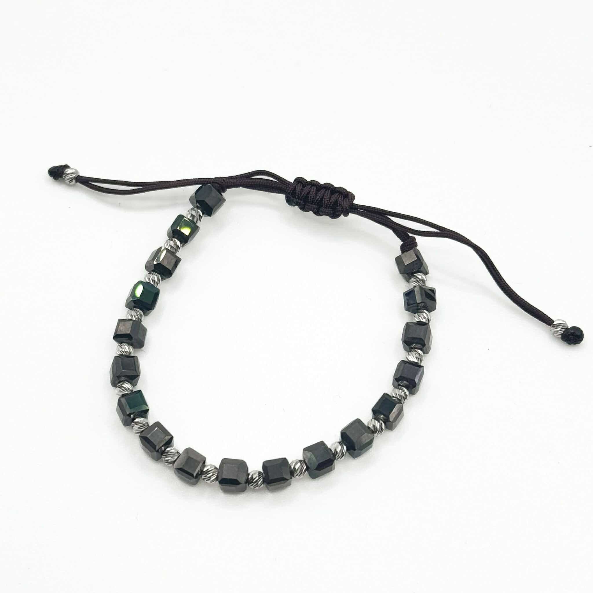 Chocolate Brown Onyx String Bracelet with 925 Sterling Silver Inserts
