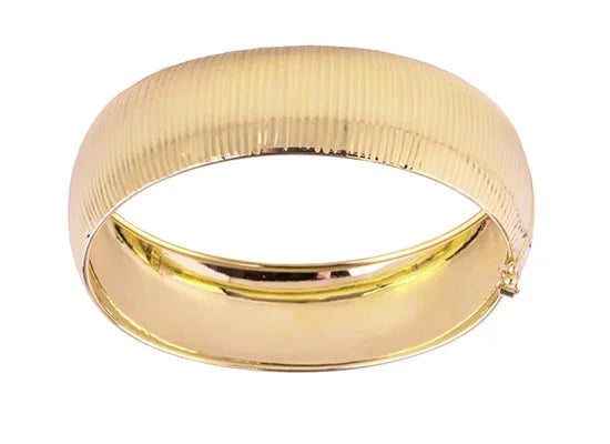 Beautiful bangle bracelet in 14k yellow gold with engraved lines.