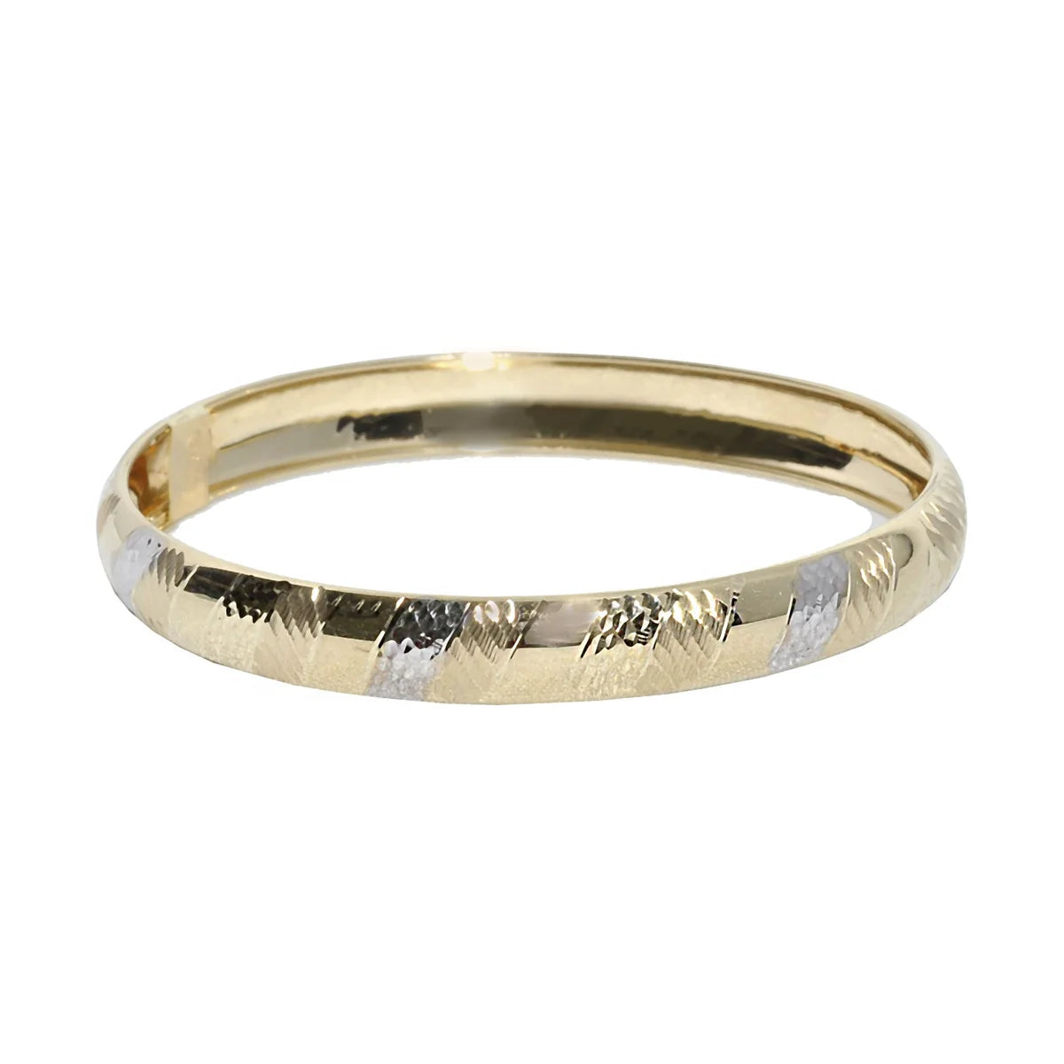 Engraved 14K/585 Yellow and White Gold Bangle Bracelet