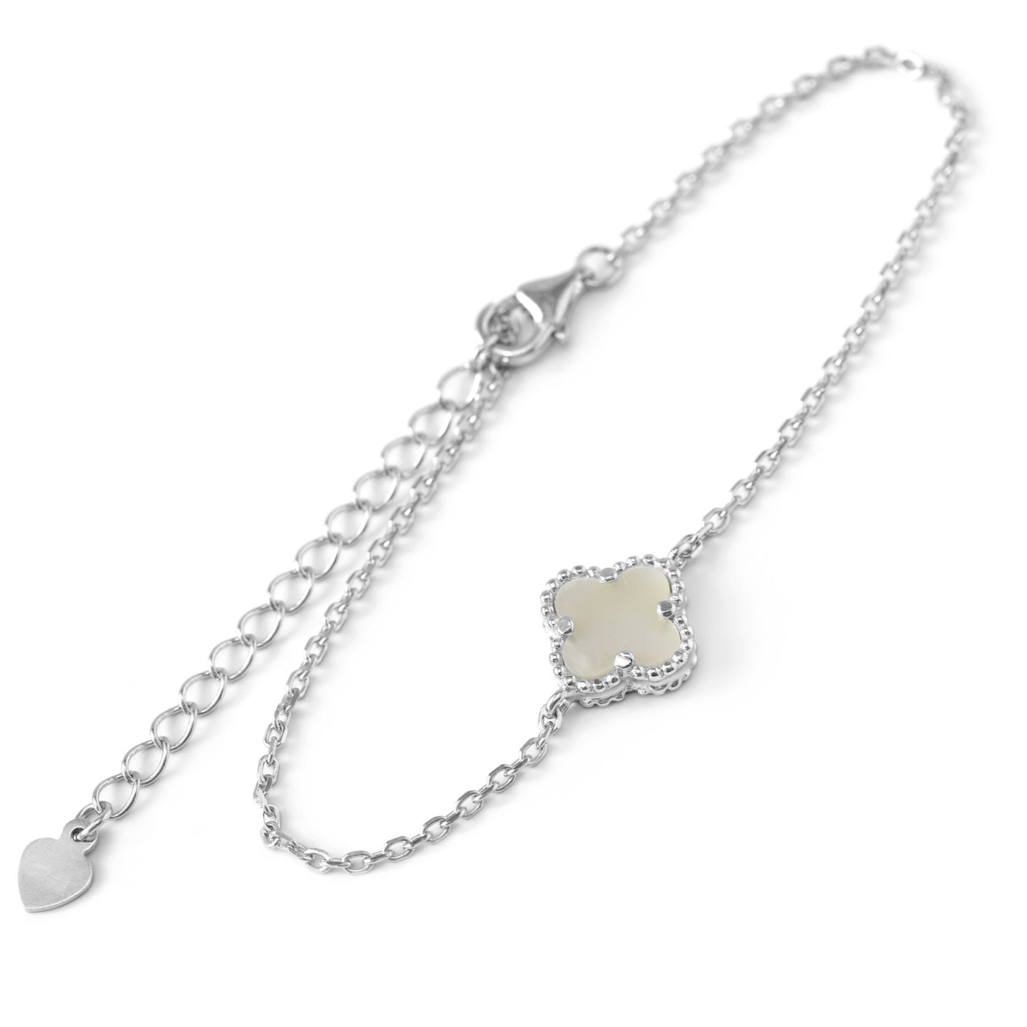 925 Sterling Silver Clover Bracelet with Mother of Pearl