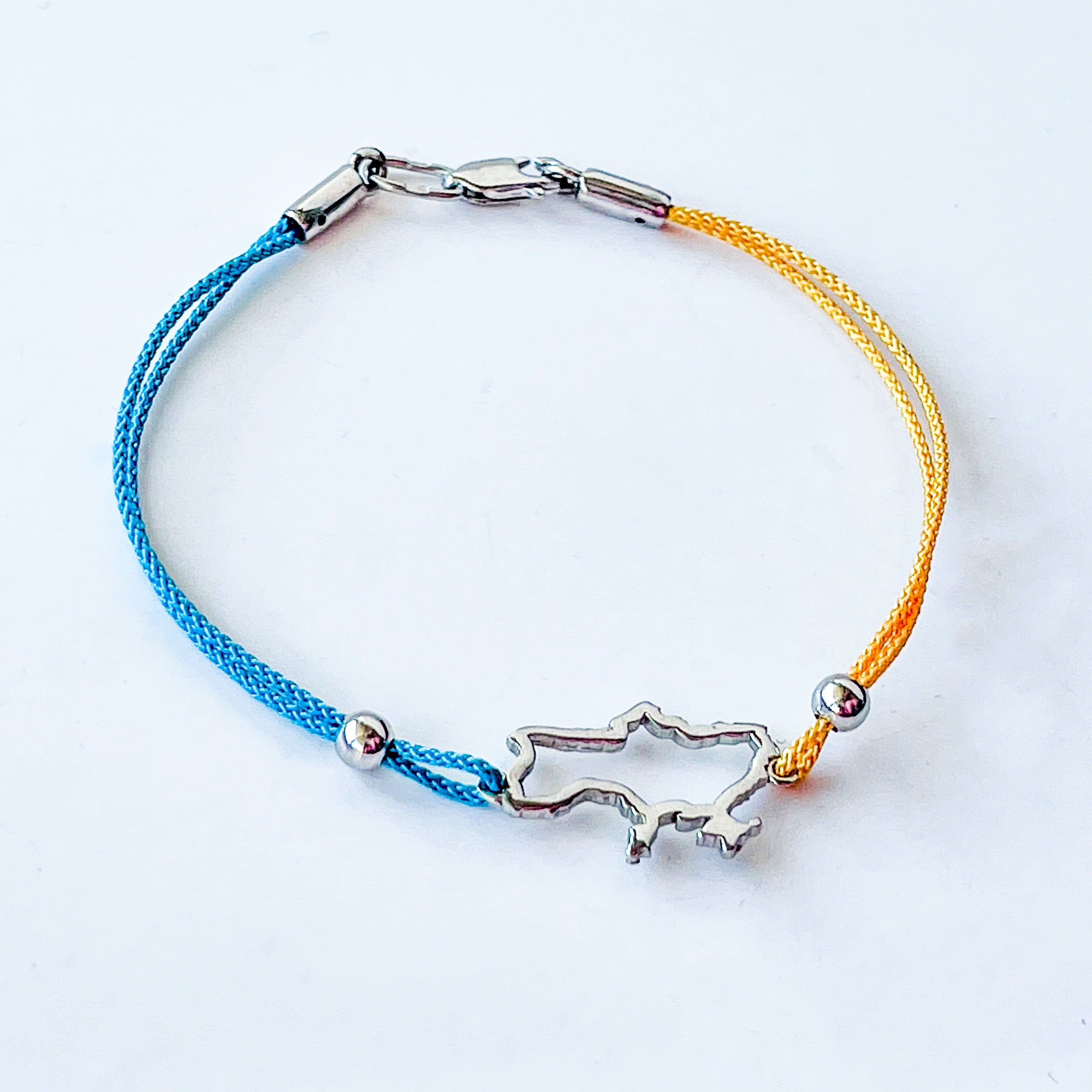 String Bracelet with 925 Sterling Silver Map of Ukraine