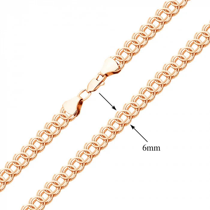 14K/585 Rose Gold Brass Curb Solid Chain 6 mm