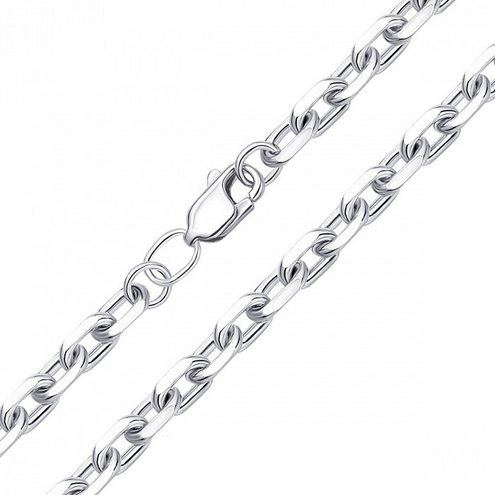 925 Sterling Silver Cable Chain Plated with Rhodium 4 mm