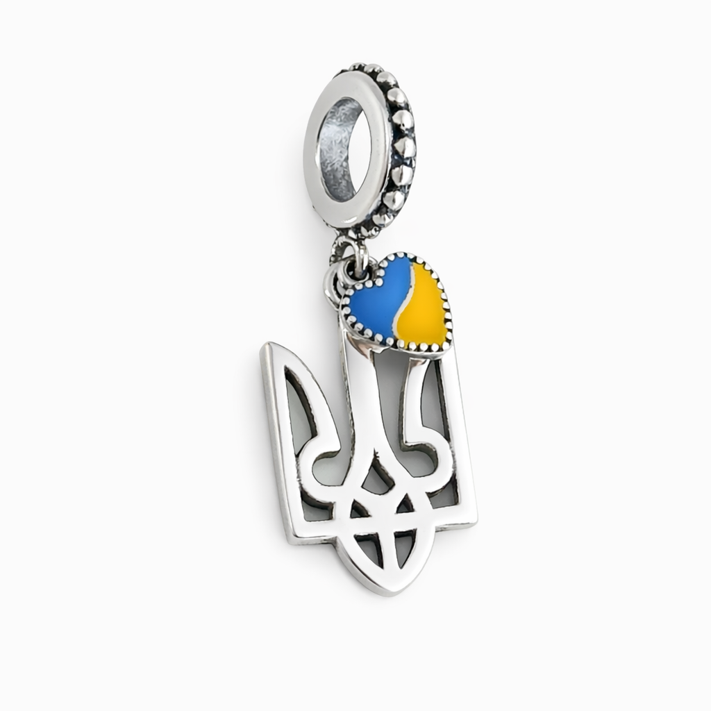 925 Sterling Silver Charm Pendant "Tryzub" with Enamel