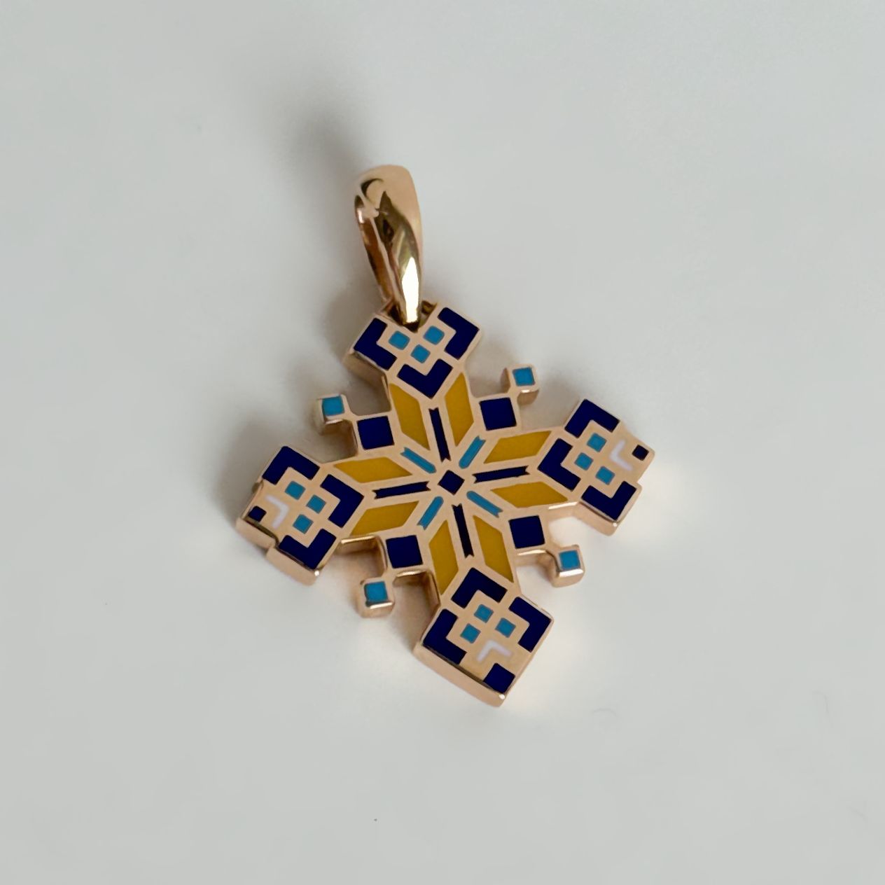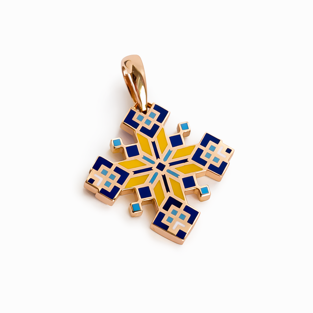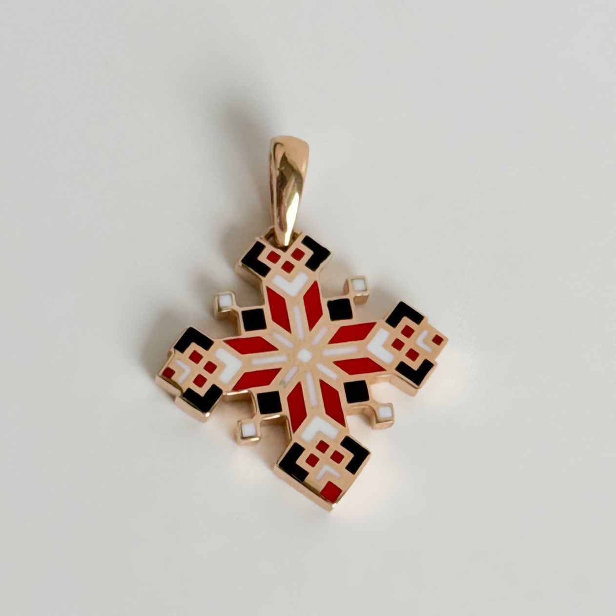 Two-Sided Vyshyvanka Cross in 14K/585 Rose Gold with Enamel