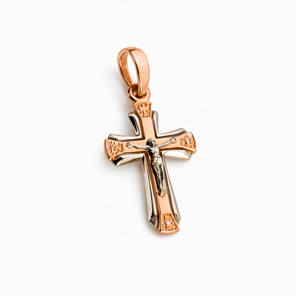 Cross in 14K/585 Rose Gold with White Gold Jesus