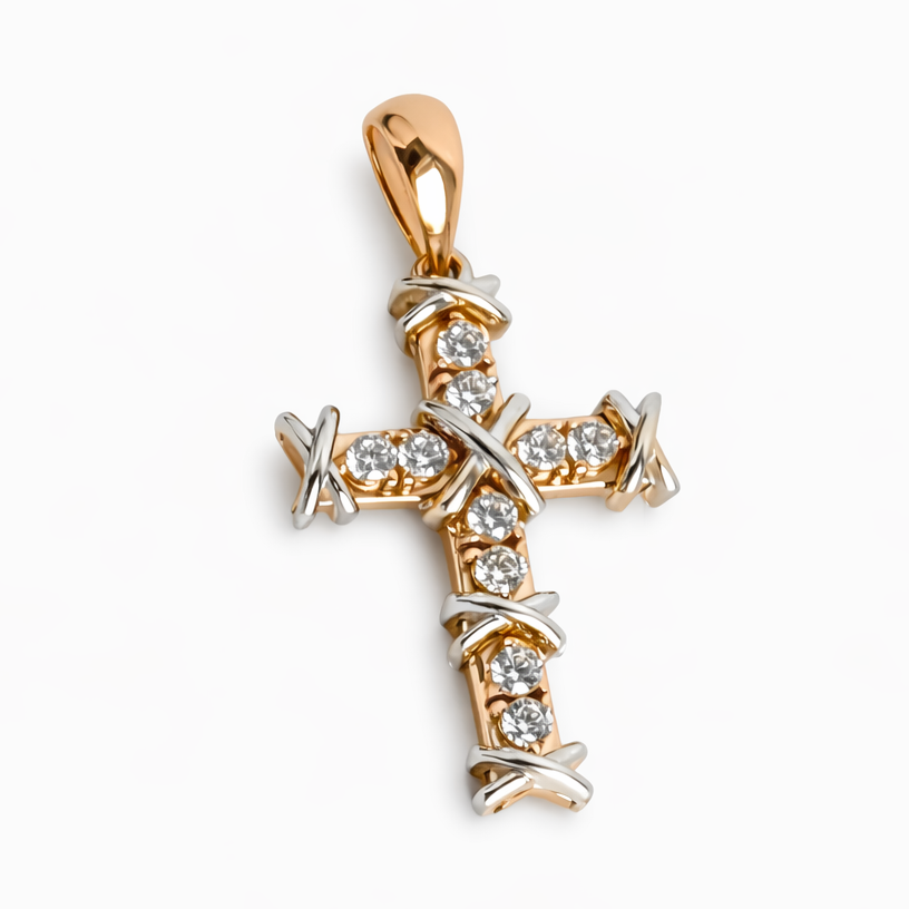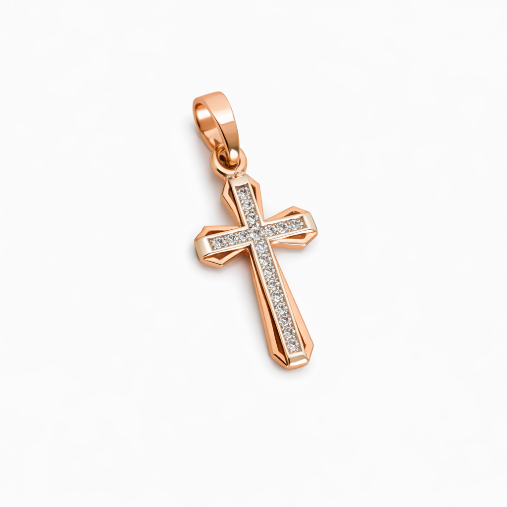 Cross in 14K/585 Rose and White Gold with Cubic Zirconia