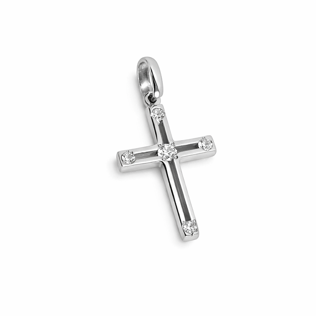 925 Sterling Silver Religious Pendant with Cross and Cubic Zirconia