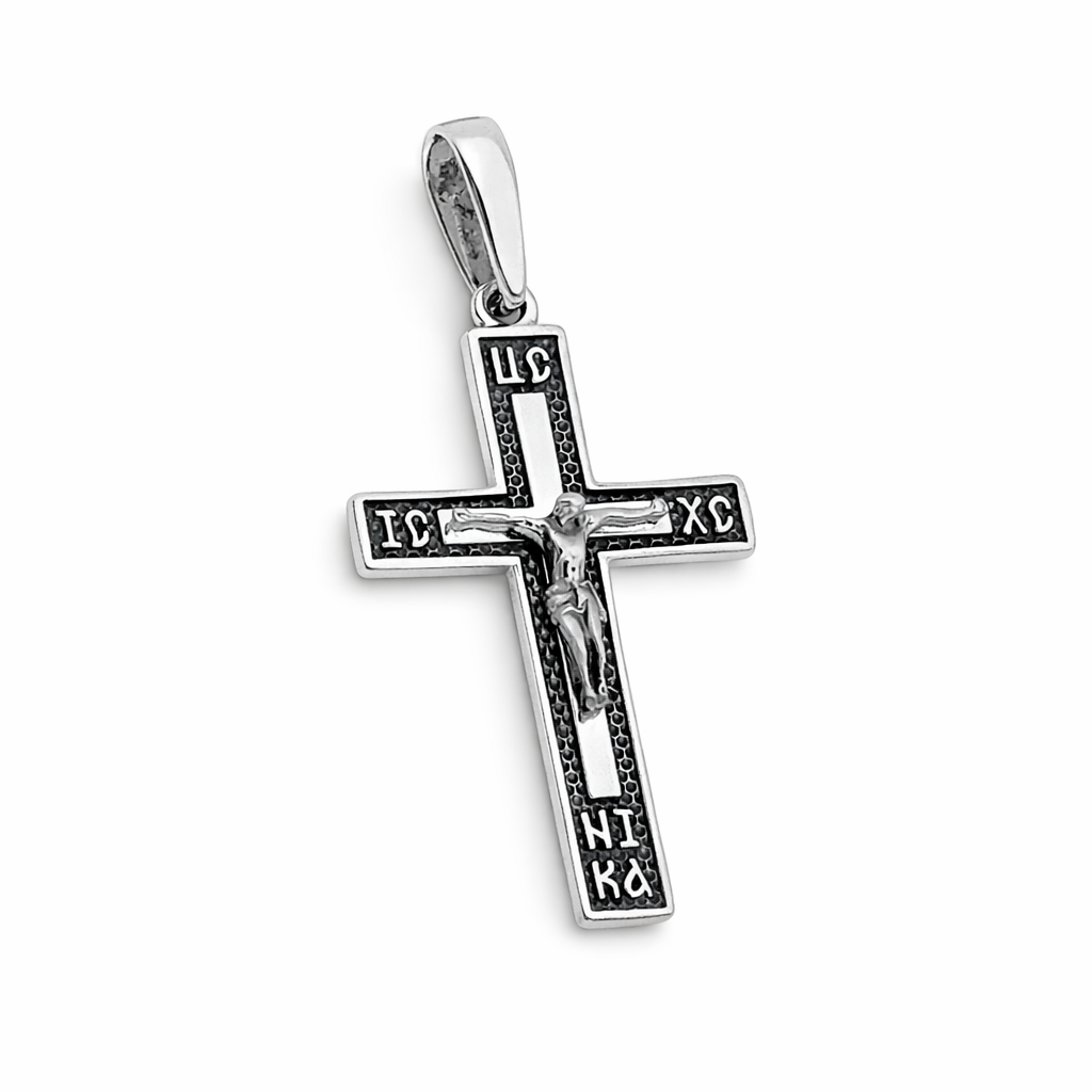 925 Sterling Silver Cross with Black Spinel and White Cubic Zirconia