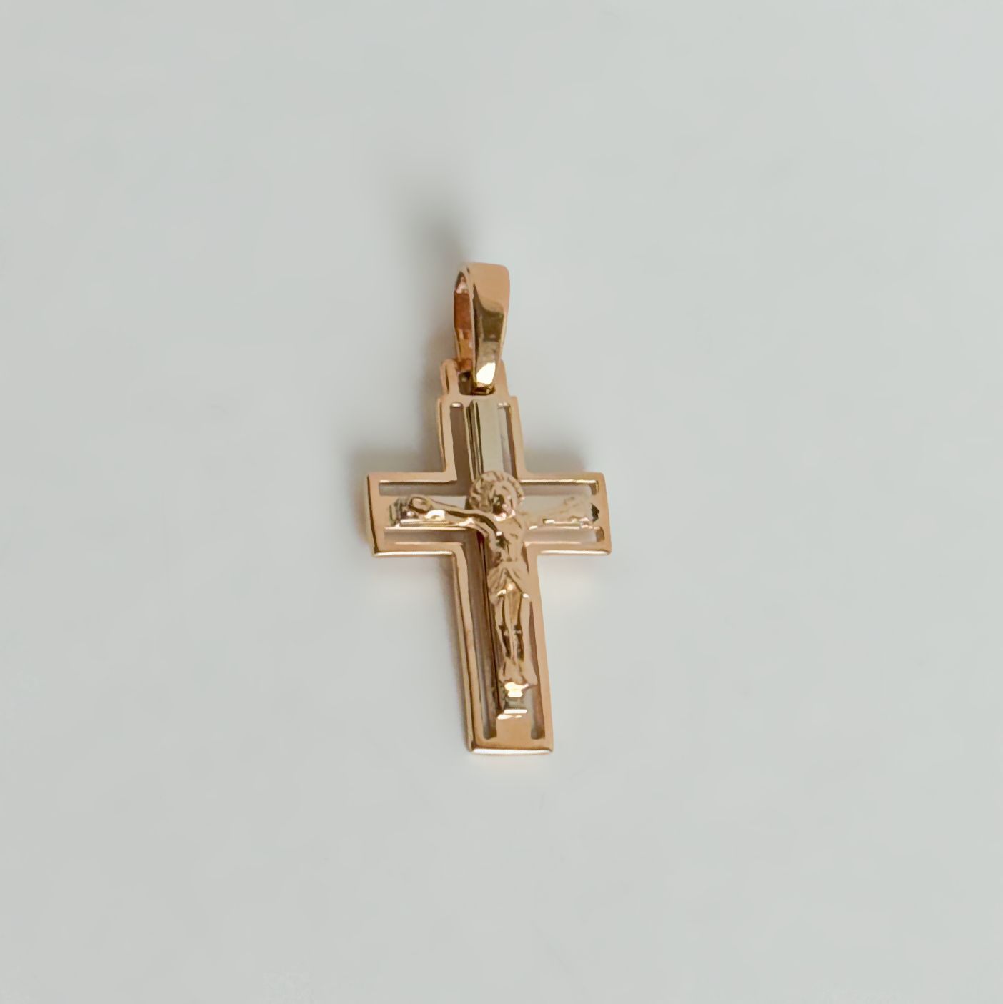 Cross Jesus in 14K/585 Rose and White Gold