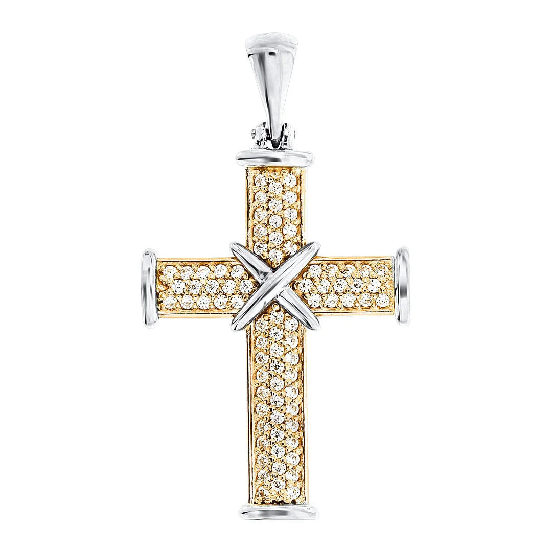 Cross in 14K/585 White and Yellow Gold with Cubic Zirconia