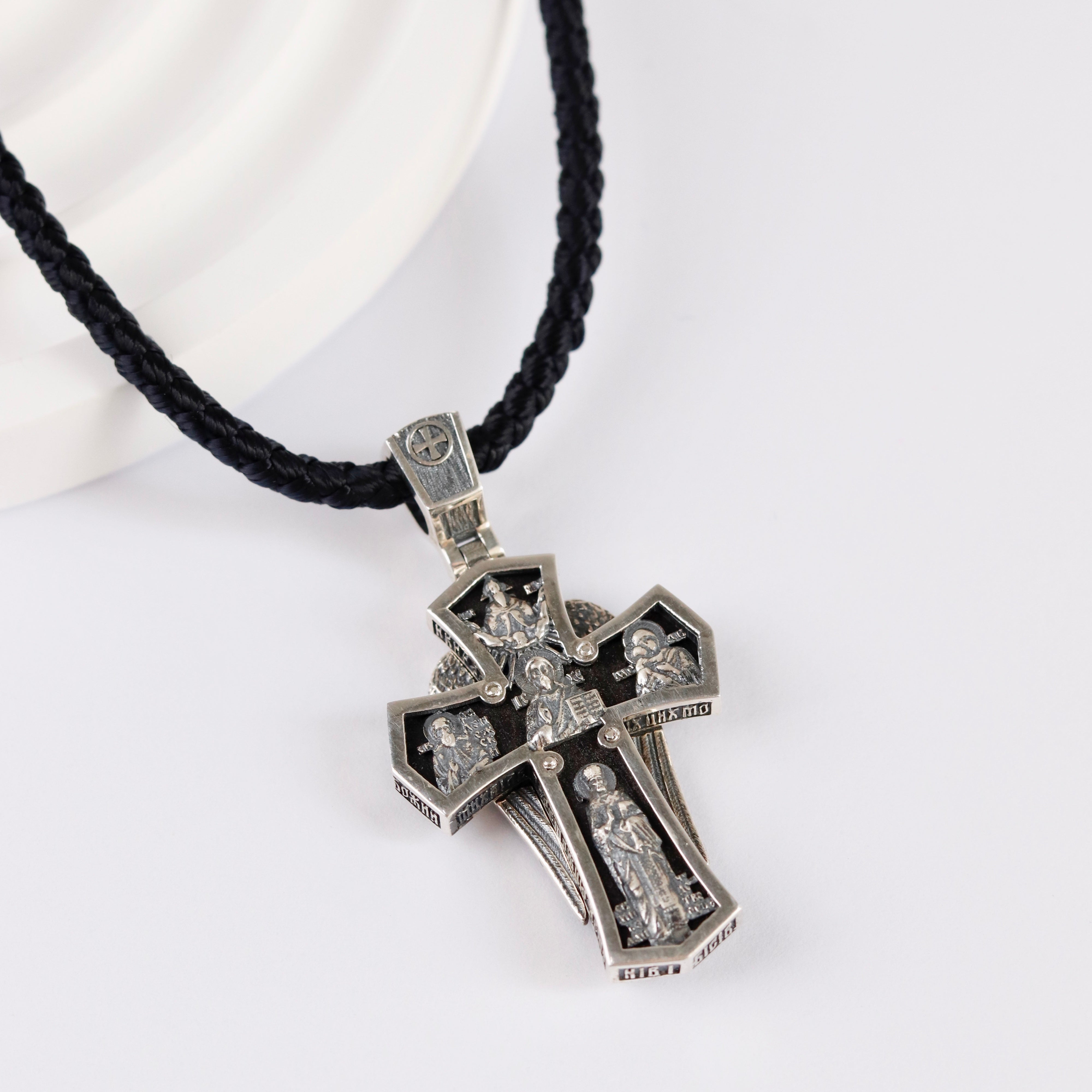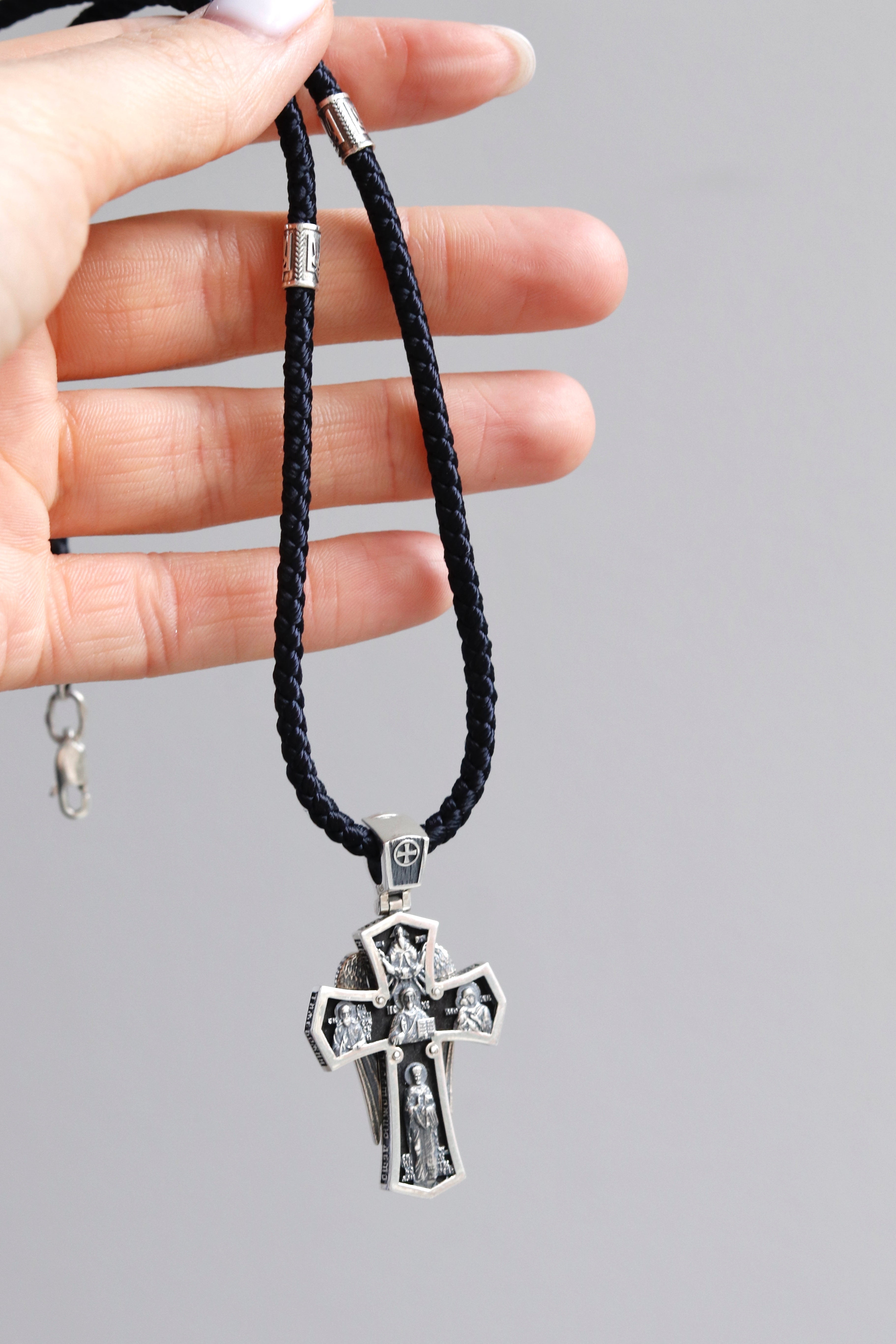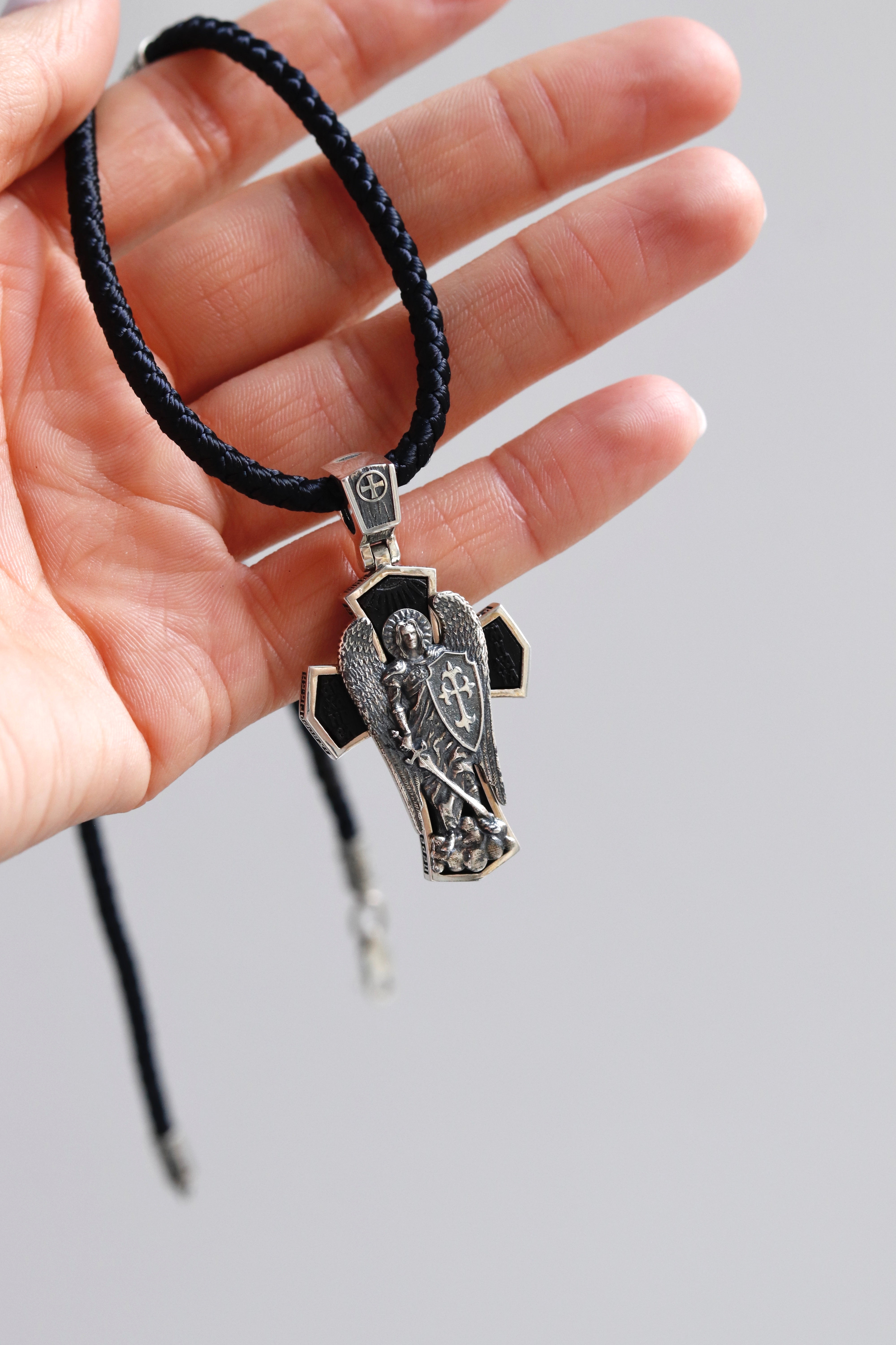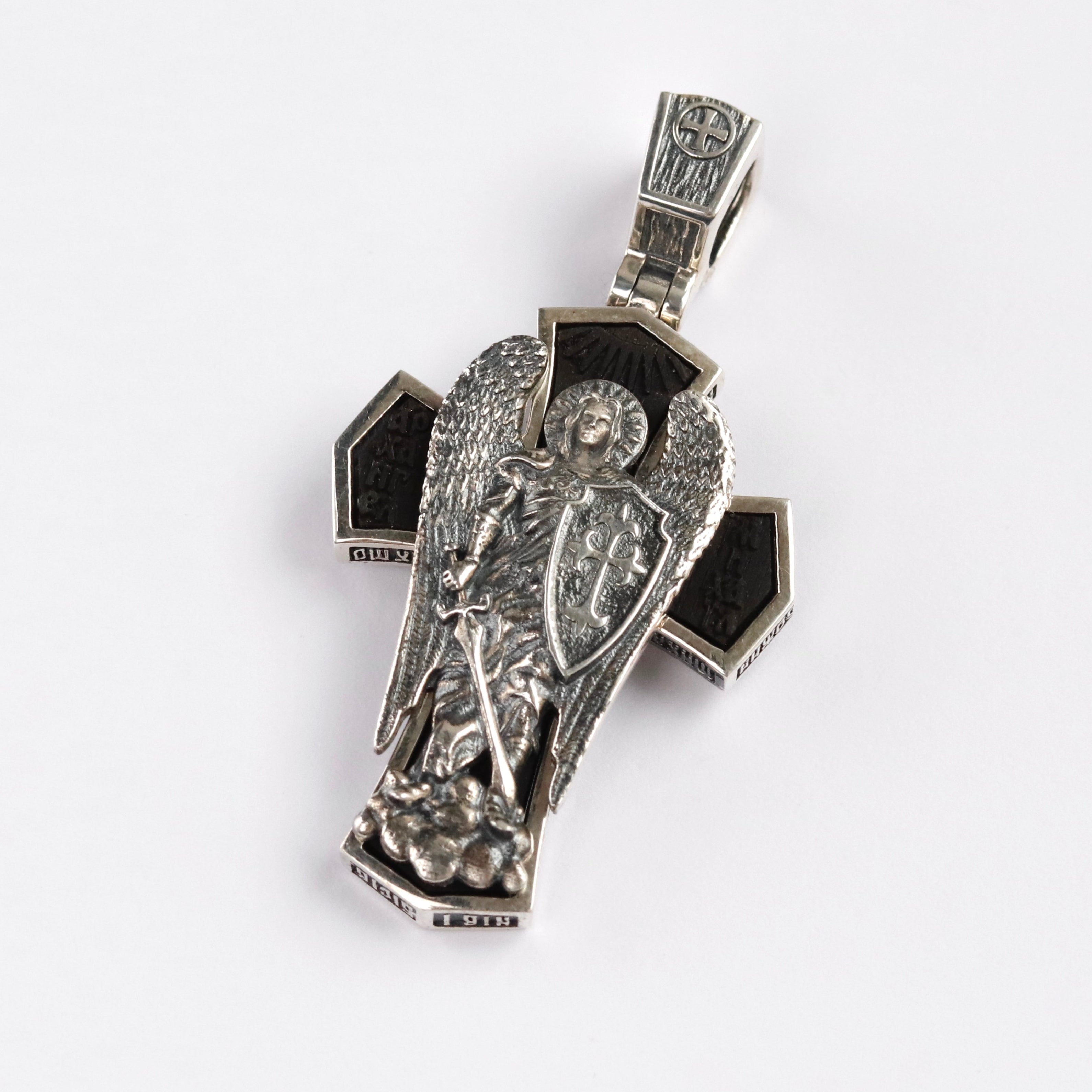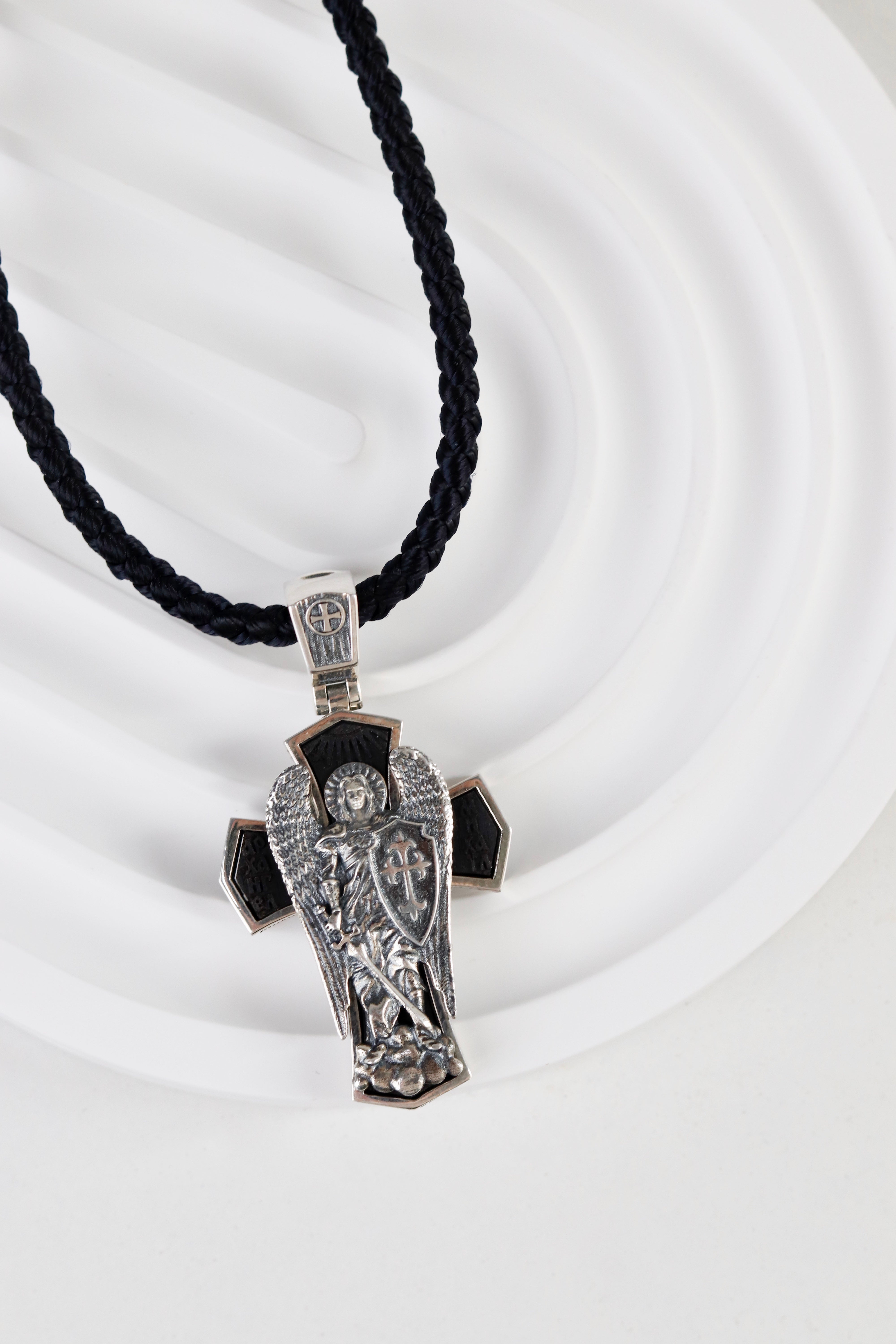 Two-Sided 925 Sterling Silver Cross with Ebony Wood