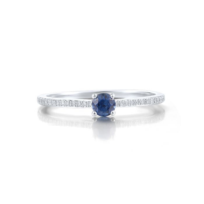 Ring in 14K/585 White Gold with Blue Sapphire and Diamonds