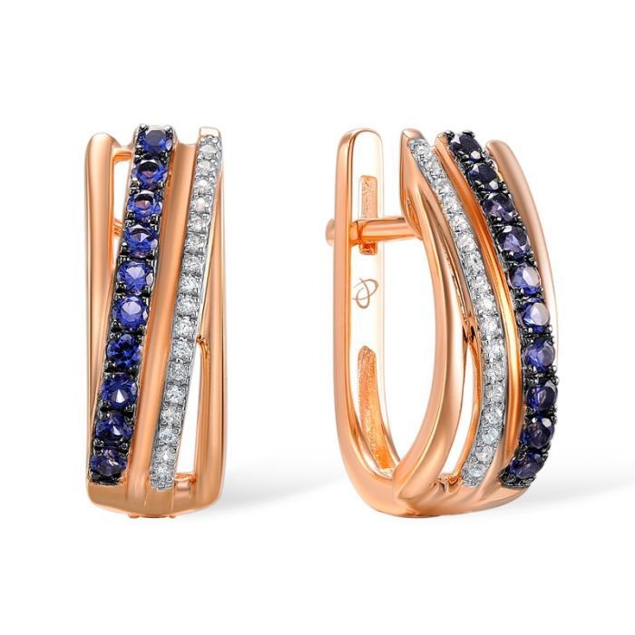 Lever Back Earrings in 14K/585 Rose Gold with Blue Sapphires and Diamonds