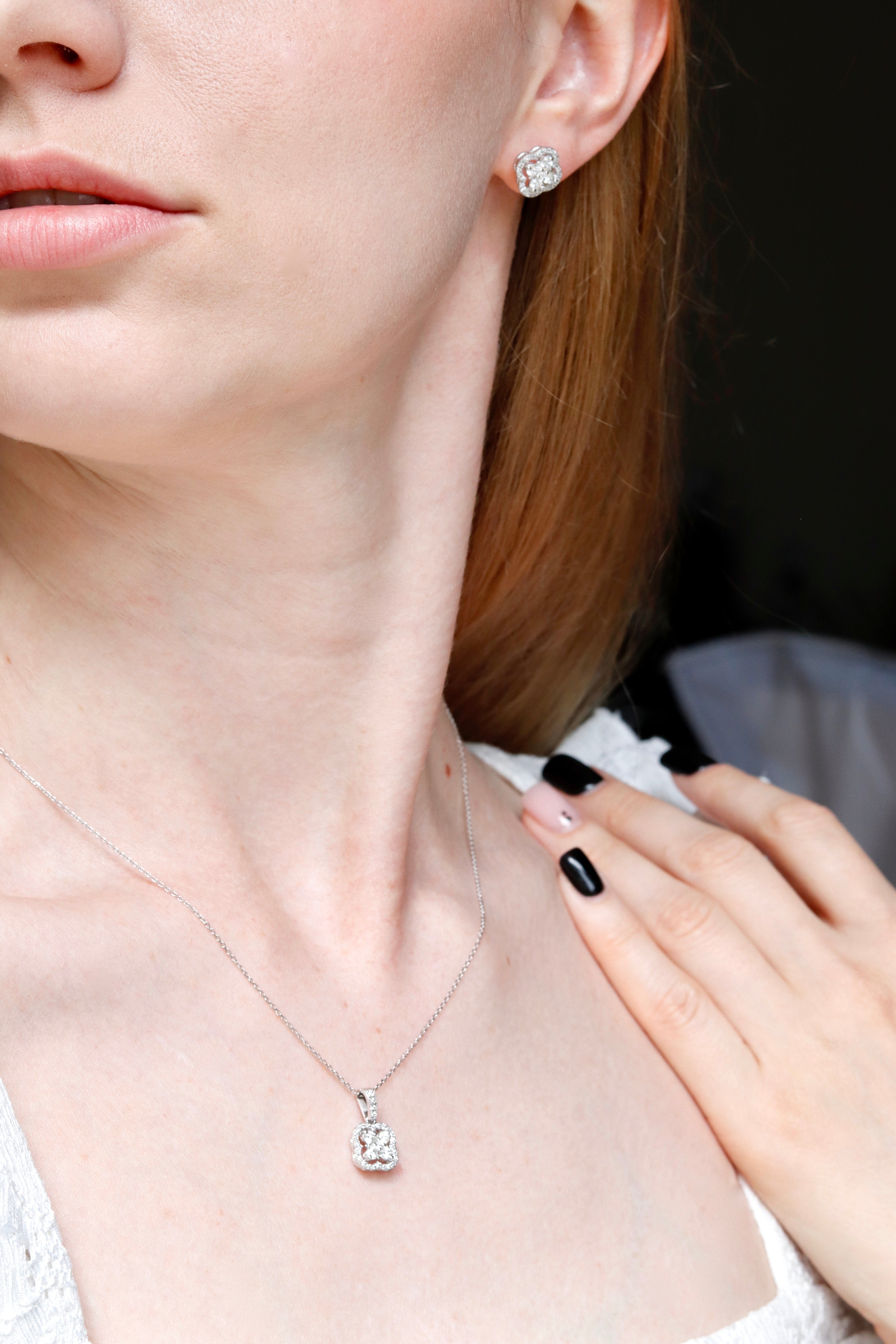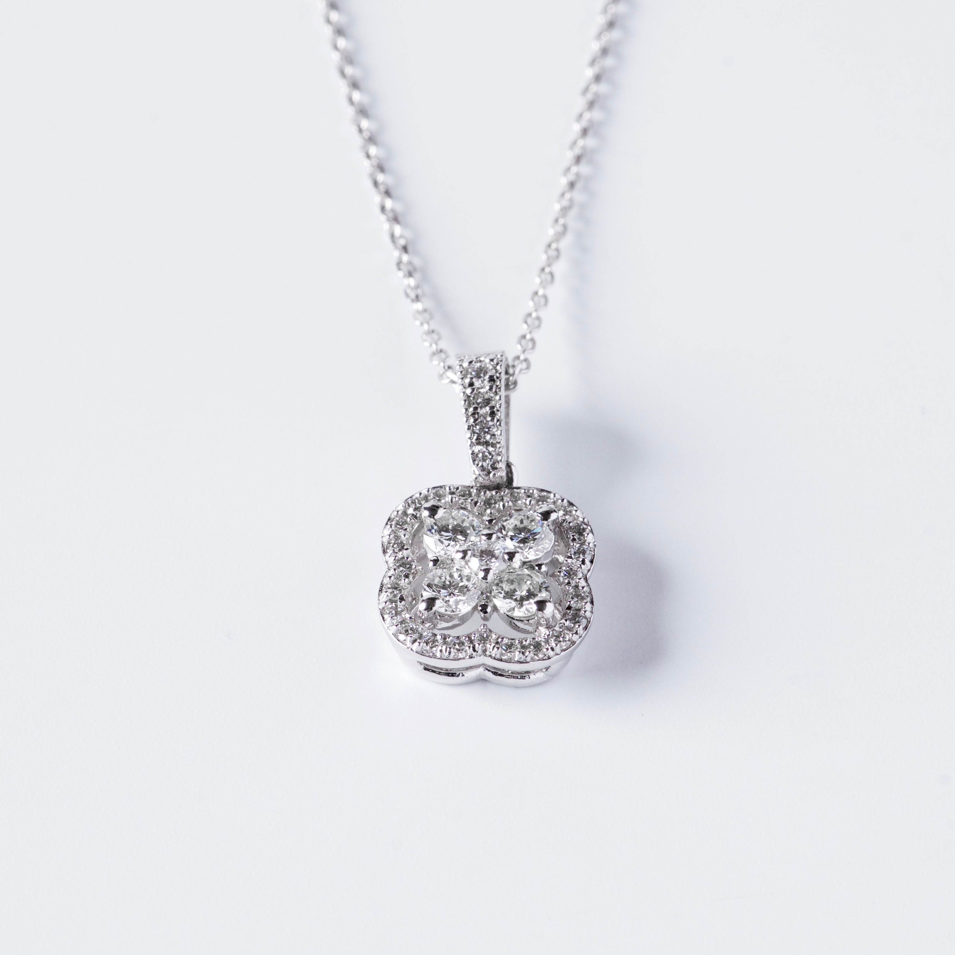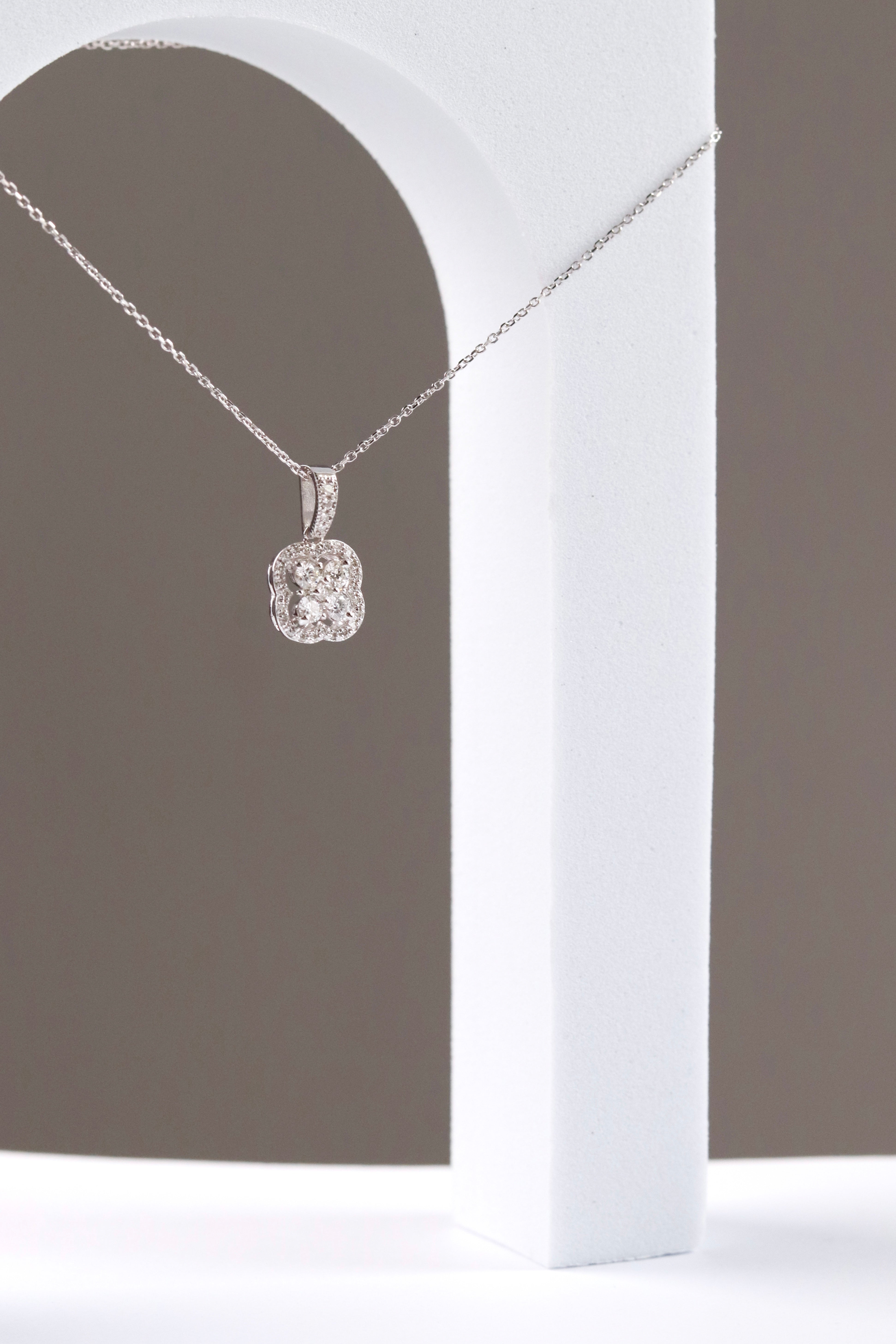 Clover Necklace in 14K/585 White Gold with Diamonds