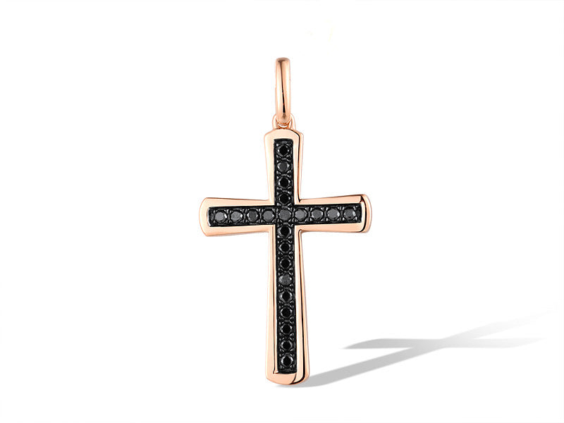 Cross in 14K/585 Rose Gold with Black Diamonds