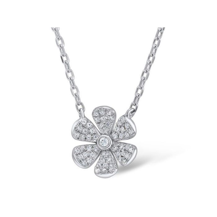 Necklace Flower in 14K/585 White Gold with Diamonds