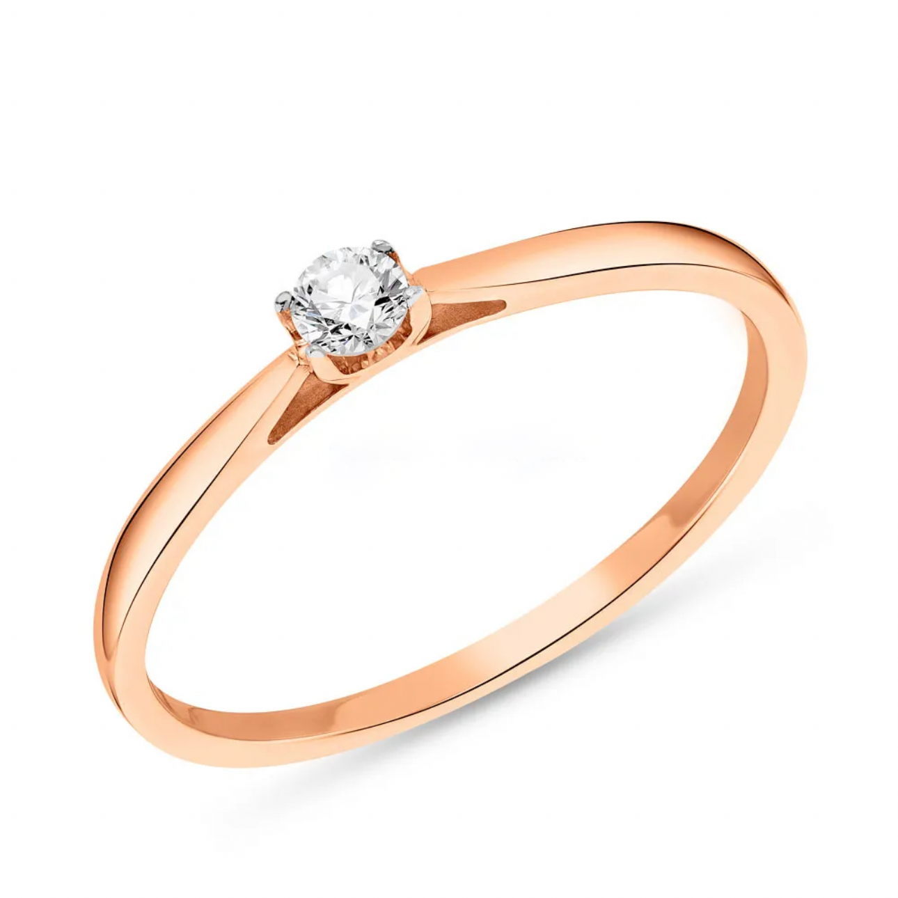 This stunning ring is crafted from solid 14K rose gold and features a single sparkling diamond, perfectly set to capture the light. Enjoy luxurious quality and lasting wear in a timeless piece of jewelry.