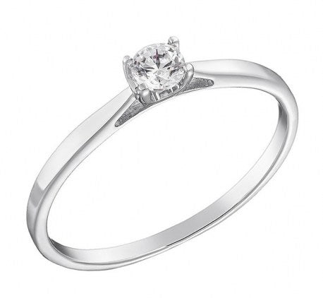 This classic 14K white gold diamond ring is the perfect choice for an engagement ring. With a delicate design, it is sure to make your partner say "yes." Featuring a single diamond in the center, this ring is sure to be cherished for years to come.