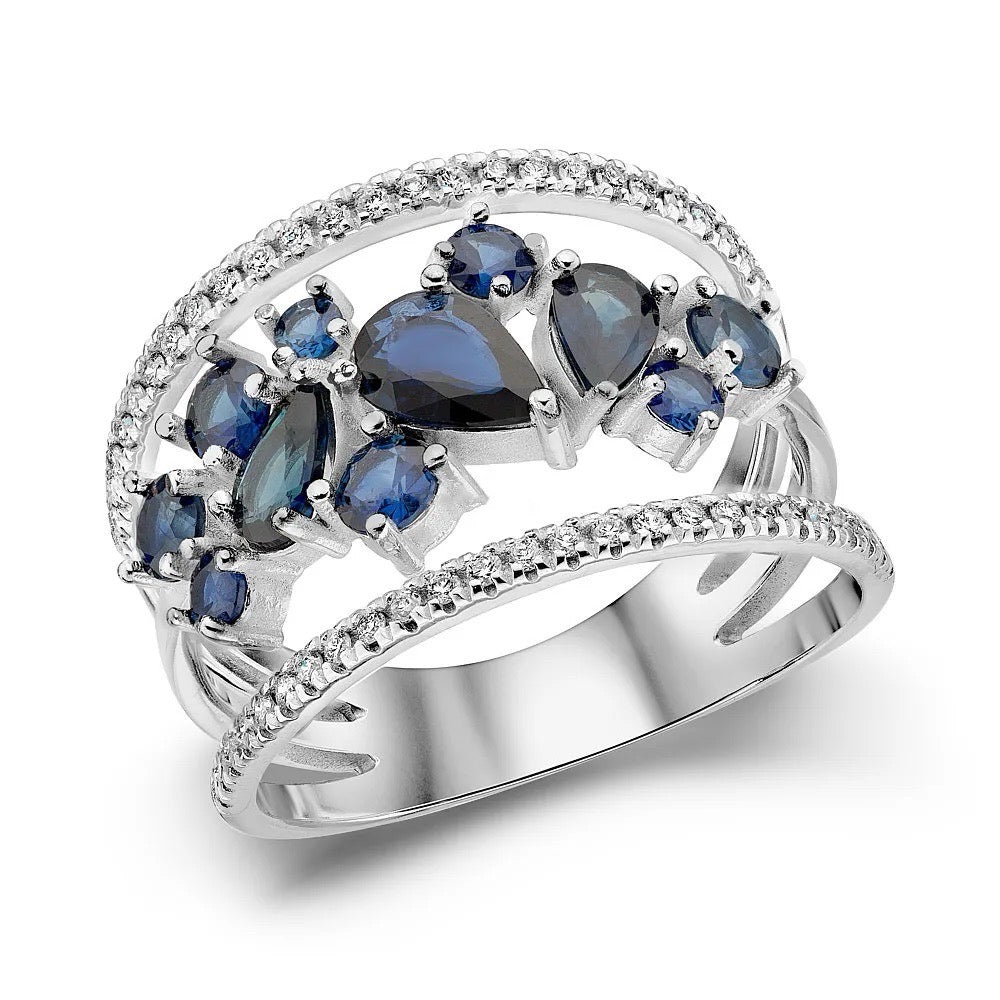 Ring in 14K/585 White Gold with Diamonds and Blue Sapphires
