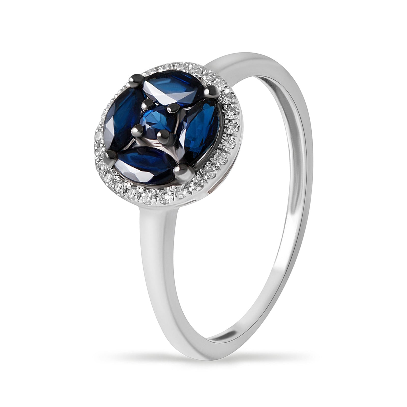 Ring in 14K/585 White Gold with Blue Sapphires and Diamonds